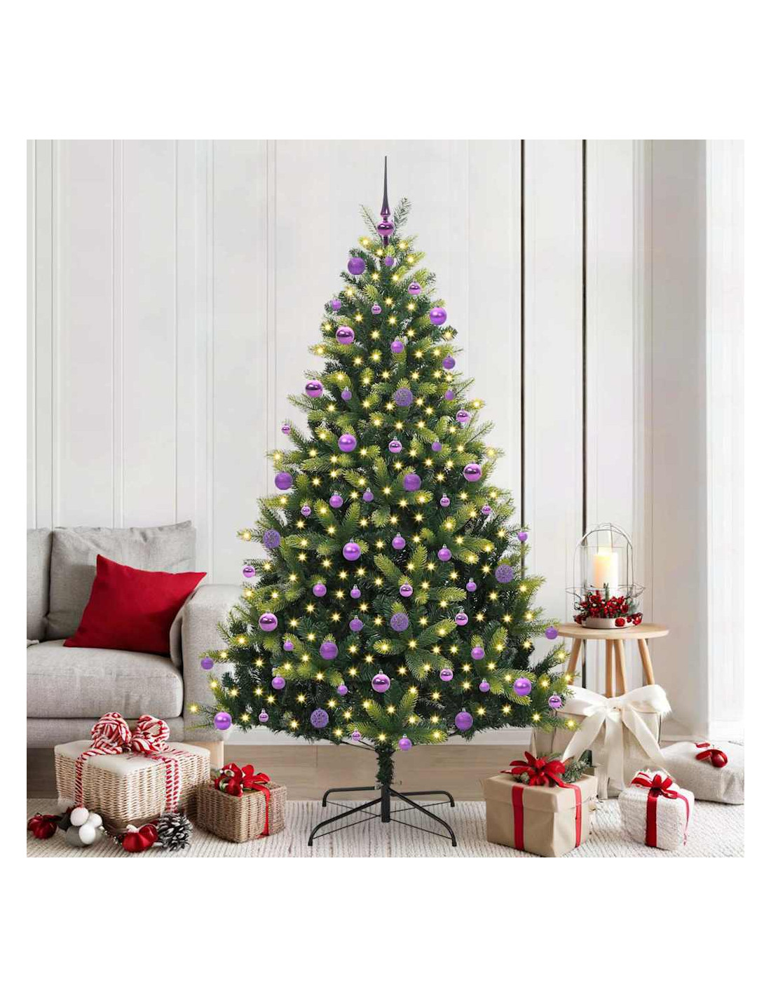- Luci LED Incluse: Con le luci LED bianche calde, l'albero crea un'atmosfera accogliente senza avere bisogno di decorazioni extra. Ogni luce è posizionata strategicamente per illuminare uniformemente ogni ramo, esaltando i tuoi ornamenti e facendo brillare le decorazioni.