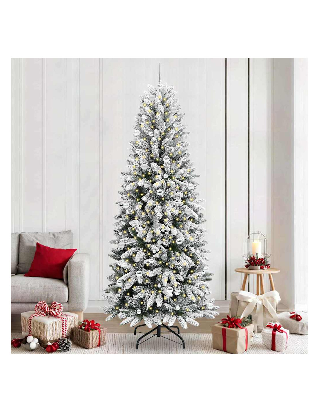 - Materiali: Realizzato in PVC di alta qualità, questo albero offre l'aspetto di un vero albero sempreverde senza i problemi di manutenzione. Il PVC garantisce durabilità e un look realistico che dura nel tempo. Il suo verde si abbina perfettamente a qualunque decorazione natalizia.