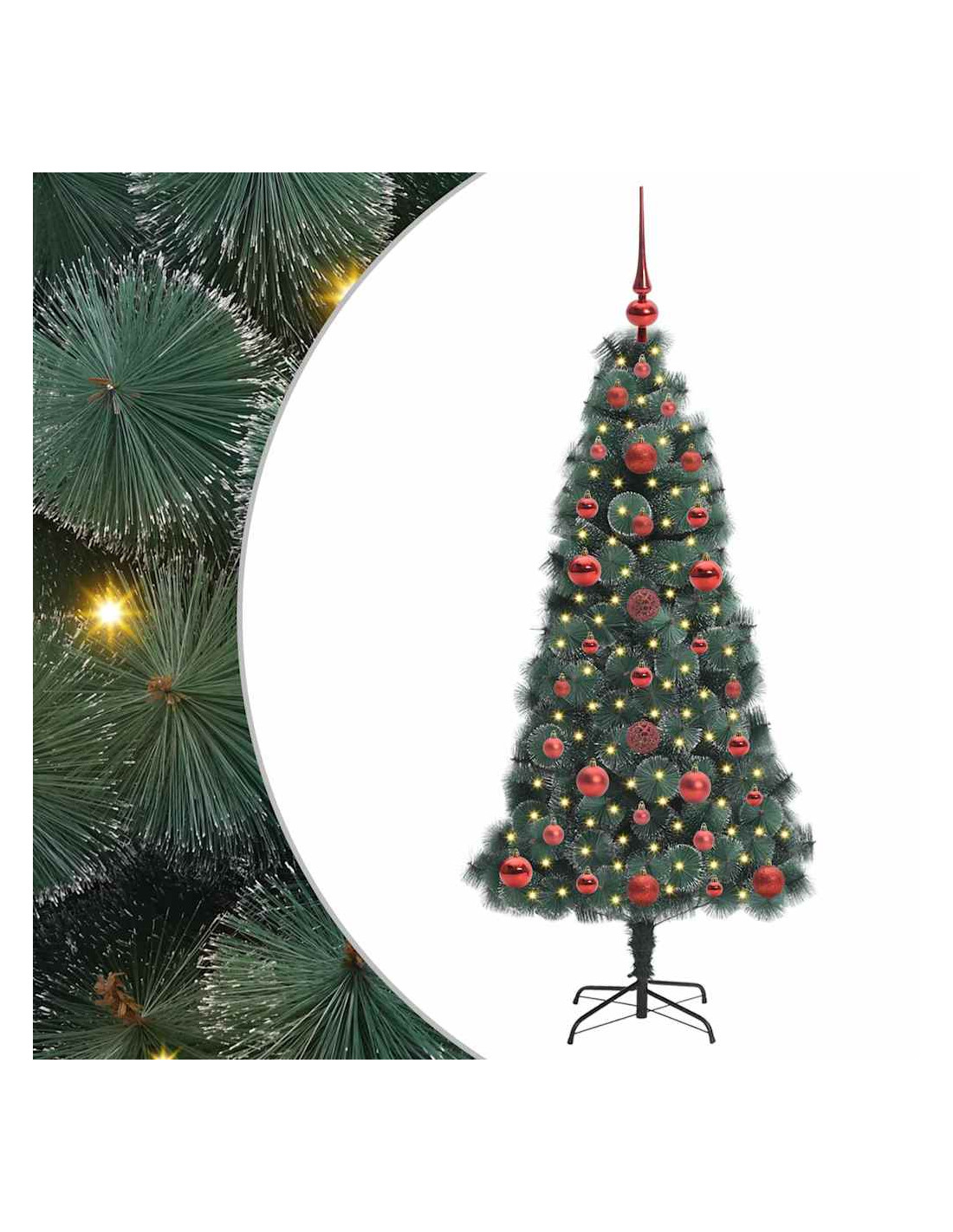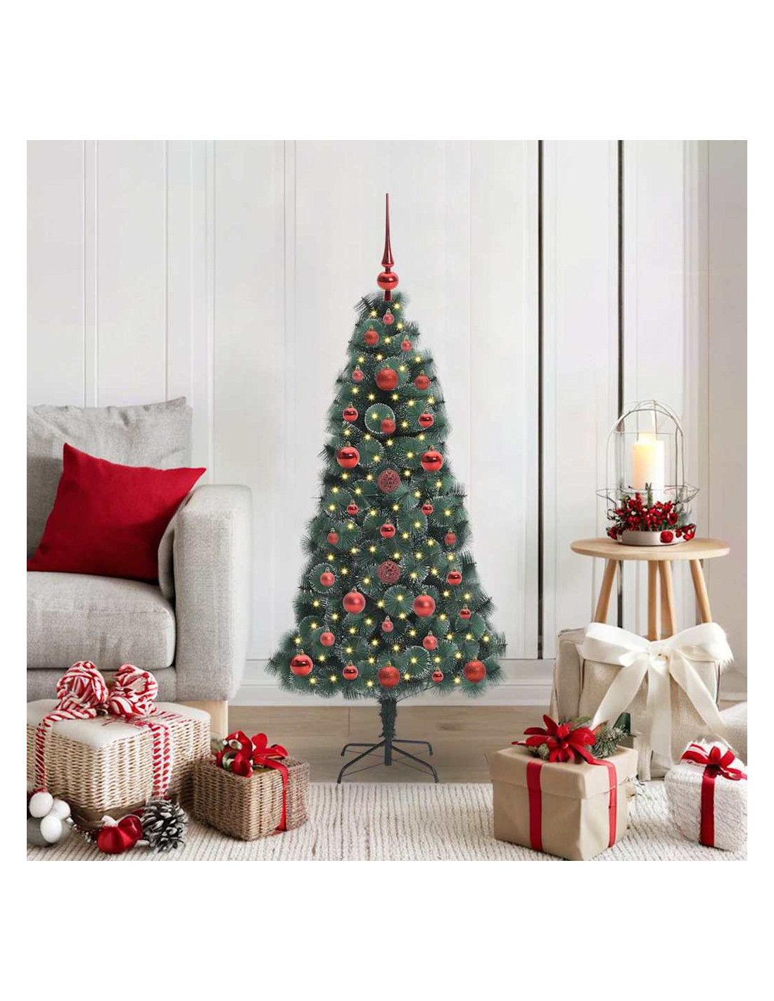 - Materiali Resistenti: Costruito con PET e plastica robusta, l'albero è fatto per durare nel tempo. La resistenza dei materiali garantisce che resti bello anche dopo diversi utilizzi. I dettagli metallici danno ulteriore supporto, assicurando che rimanga in forma ogni anno senza perdere il suo aspetto.