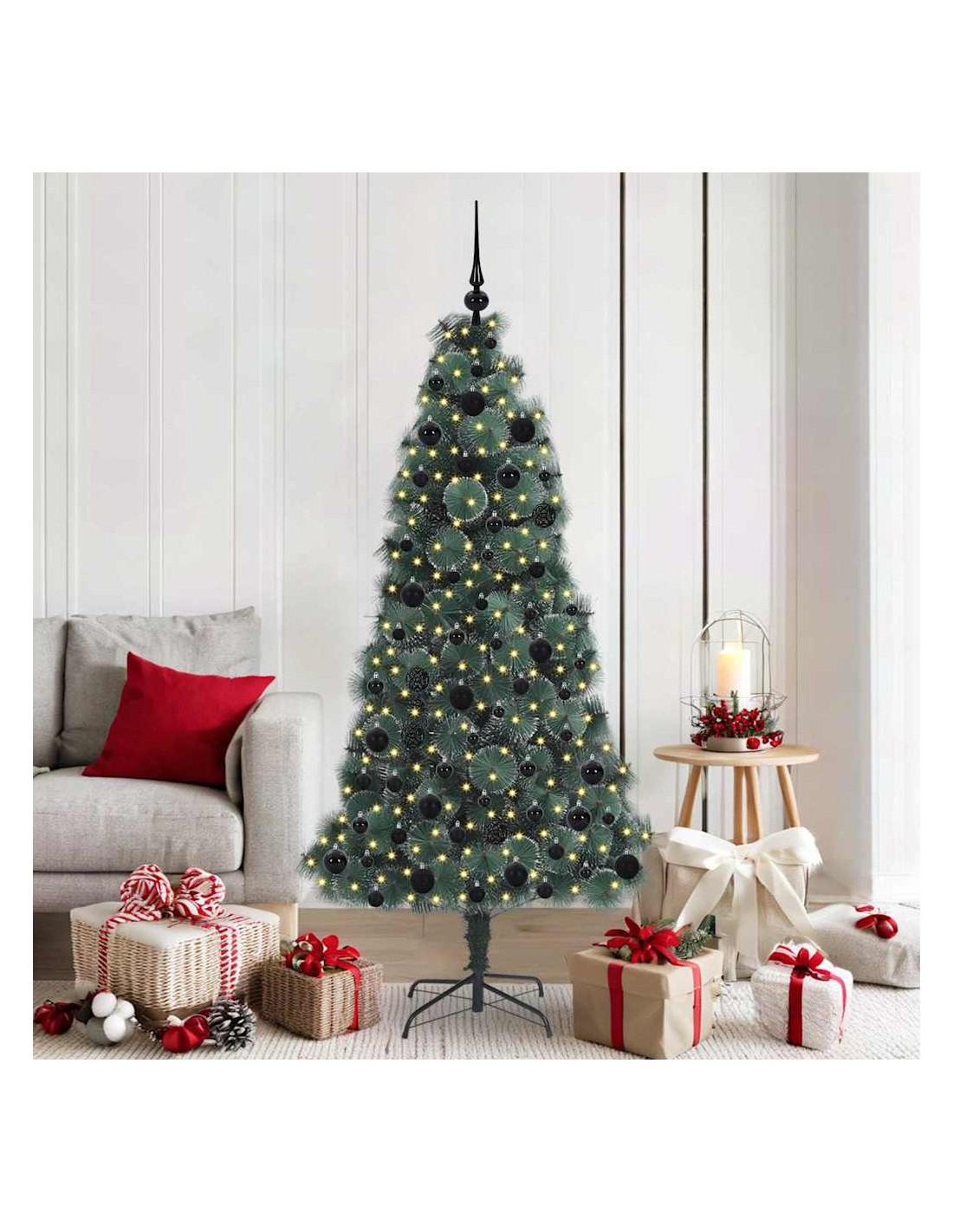 - Materiali Resistenti: Costruito con PET e plastica robusta, l'albero è fatto per durare nel tempo. La resistenza dei materiali garantisce che resti bello anche dopo diversi utilizzi. I dettagli metallici danno ulteriore supporto, assicurando che rimanga in forma ogni anno senza perdere il suo aspetto.