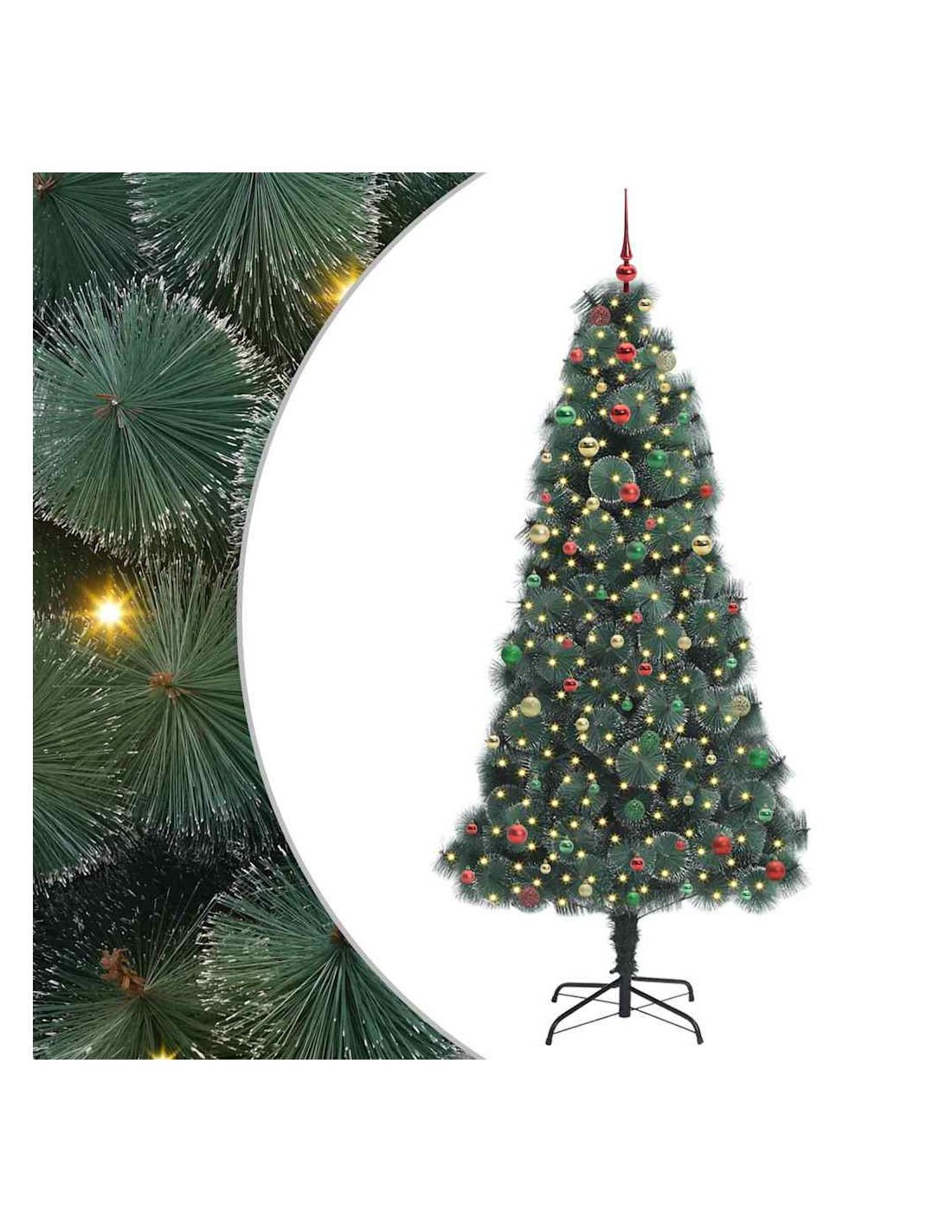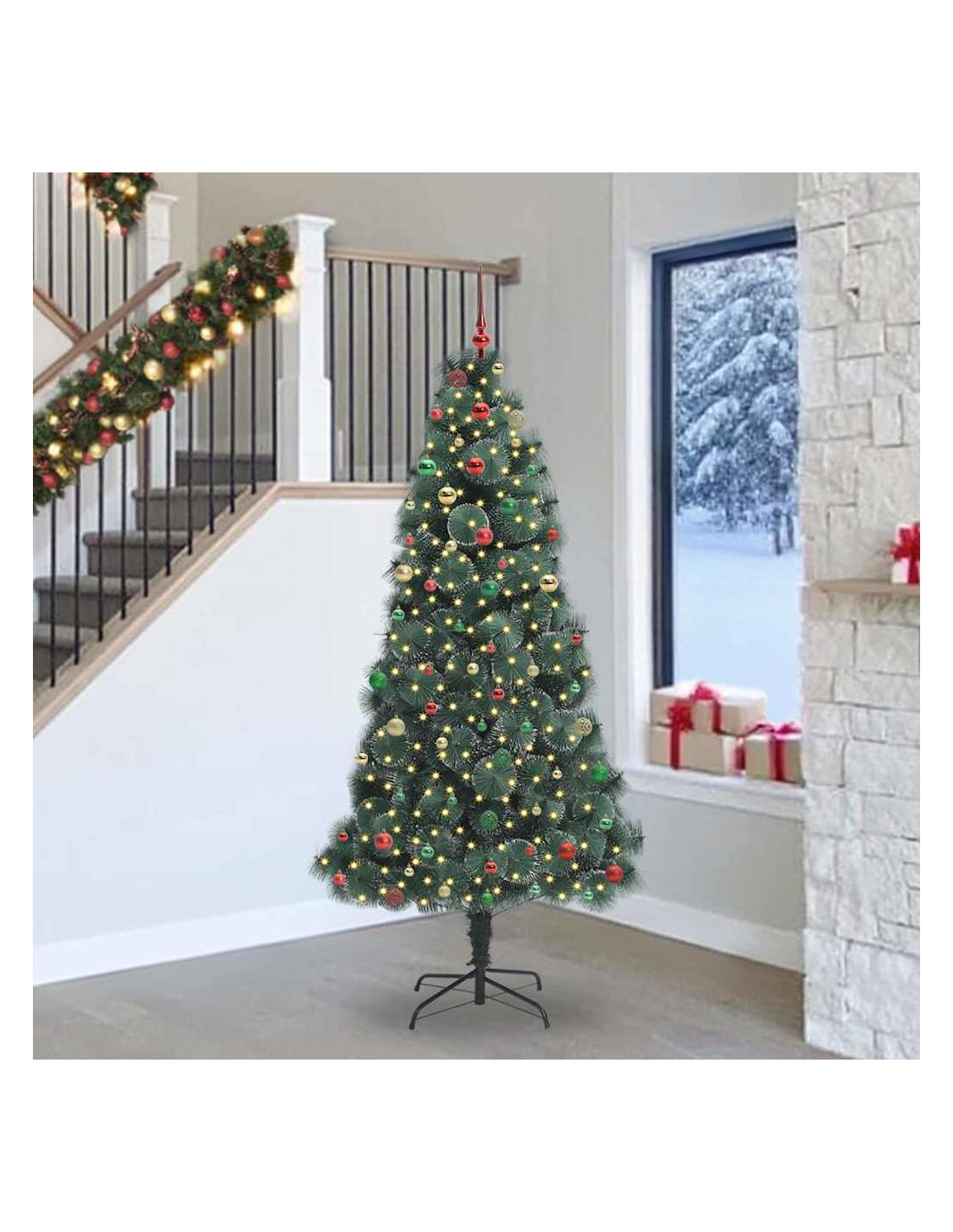 - Materiali Resistenti: Costruito con PET e plastica robusta, l'albero è fatto per durare nel tempo. La resistenza dei materiali garantisce che resti bello anche dopo diversi utilizzi. I dettagli metallici danno ulteriore supporto, assicurando che rimanga in forma ogni anno senza perdere il suo aspetto.