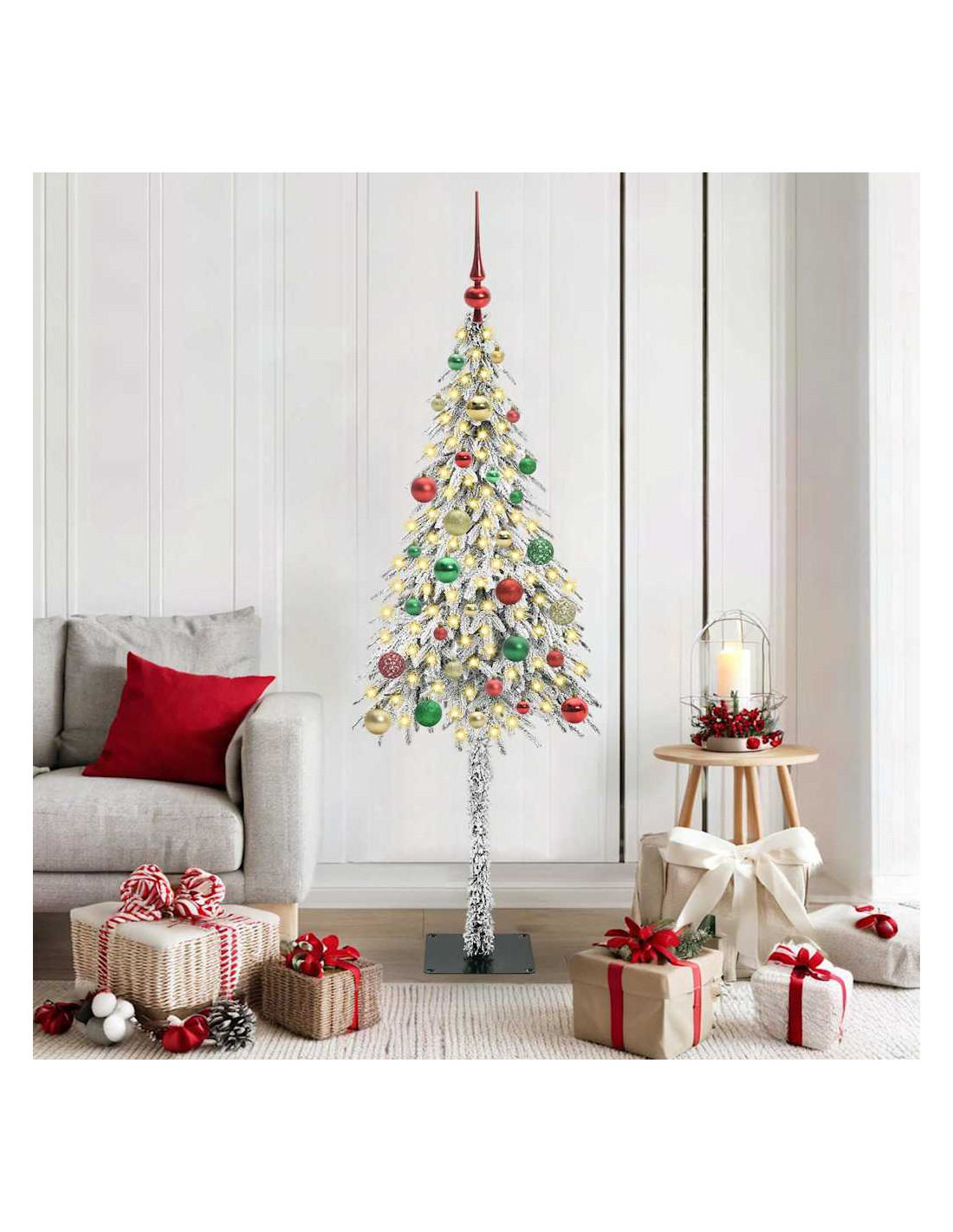 Questo albero di Natale artificiale sprizza gioia festiva, mescolando tradizione e modernità. È progettato per migliorare qualsiasi spazio e fa davvero la sua figura con il suo design realistico e imbiancato. Che tu lo metta in casa o sulla terrazza, il suo stile semplice e le linee pulite lo rendono adatto a qualsiasi ambiente festivo. Perfetto per riunirti con amici e famiglia!