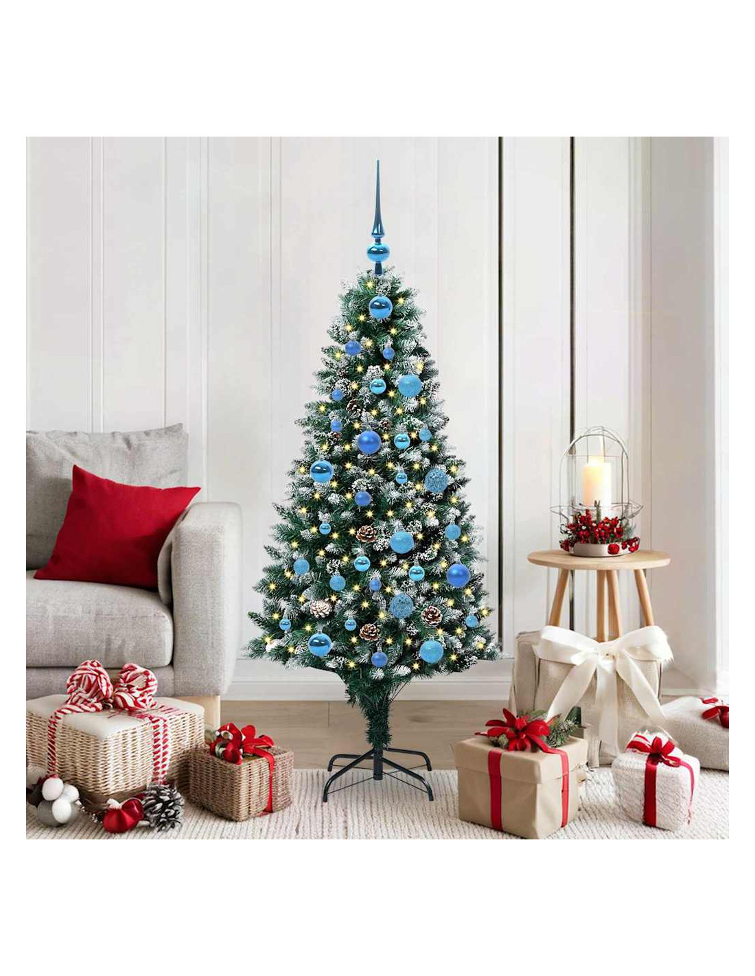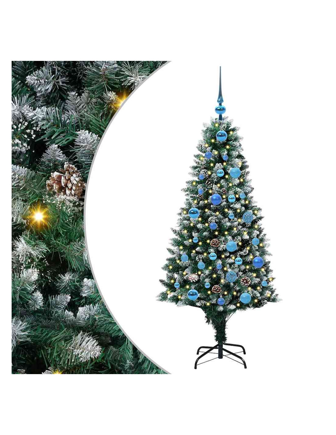 L'albero di Natale artificiale in PVC unisce il fascino del Natale con la comodità delle luci LED moderne. È progettato per interni e spazi esterni riparati, con una forma conica, pigne e neve bianca che creano un'atmosfera magica nel tuo soggiorno, giardino o terrazza. Questo albero stagionale porta lo spirito del Natale in ogni ambiente.