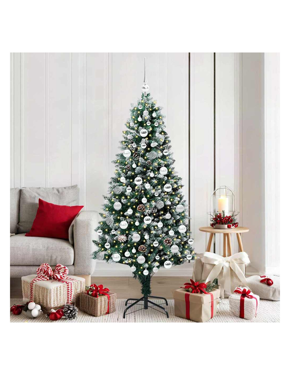 L'albero di Natale artificiale in PVC unisce il fascino del Natale con la comodità delle luci LED moderne. È progettato per interni e spazi esterni riparati, con una forma conica, pigne e neve bianca che creano un'atmosfera magica nel tuo soggiorno, giardino o terrazza. Questo albero stagionale porta lo spirito del Natale in ogni ambiente.