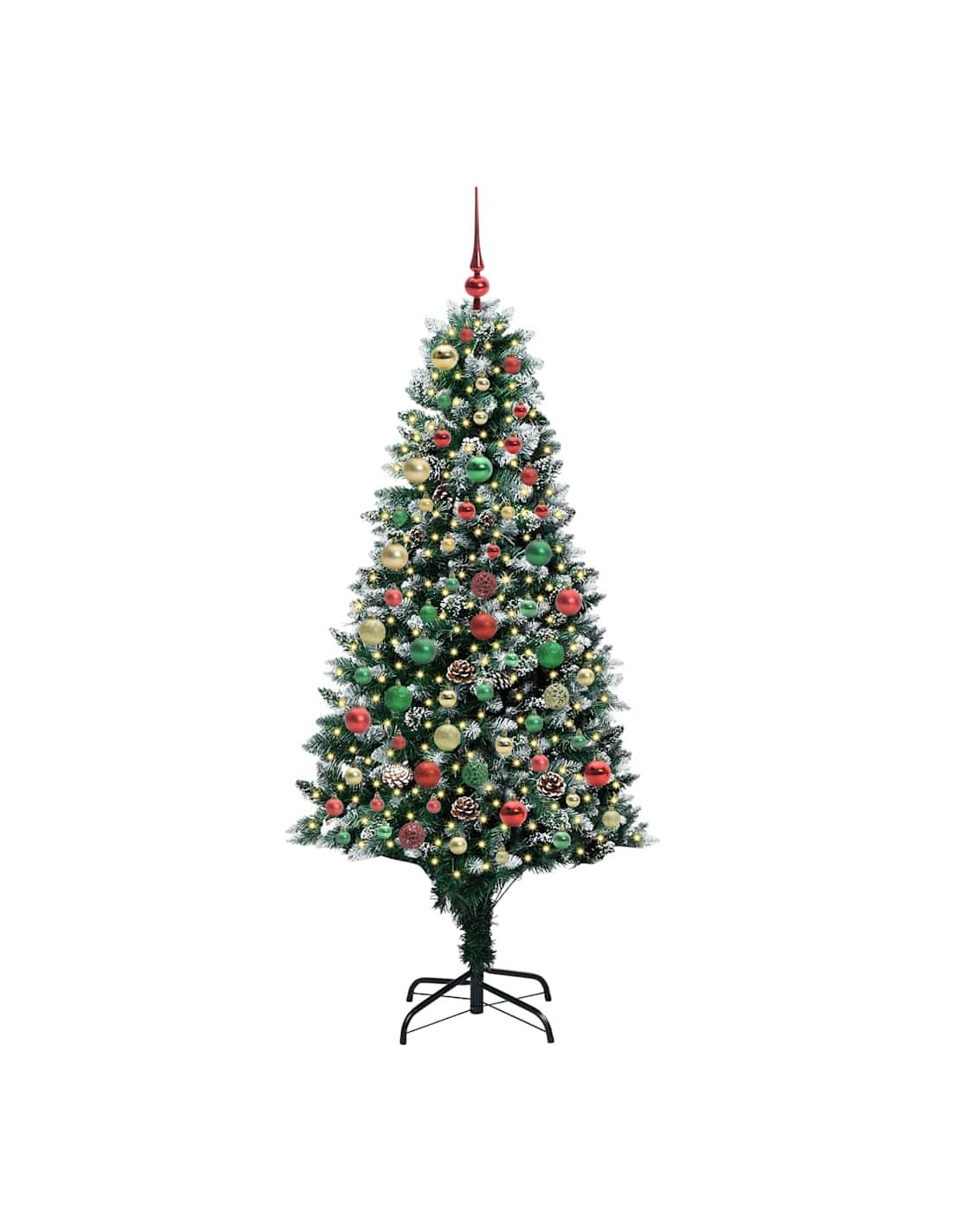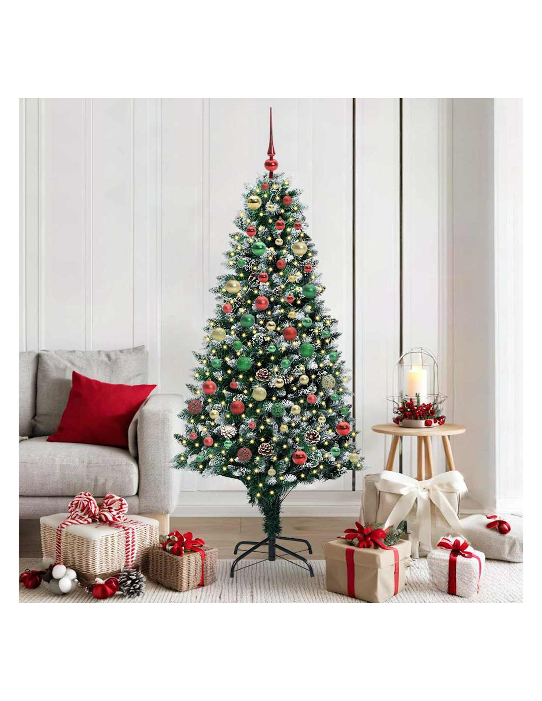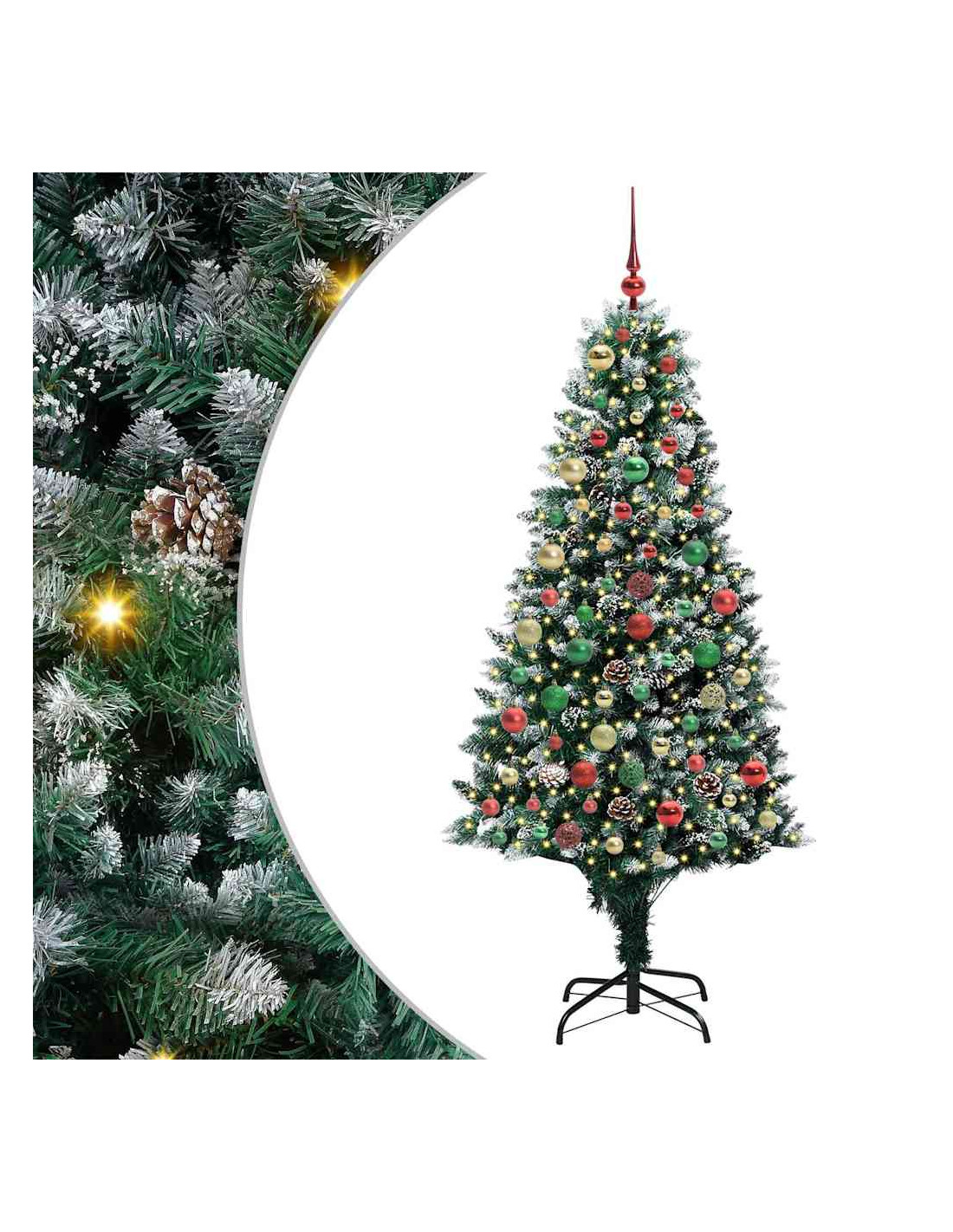 L'albero di Natale artificiale in PVC unisce il fascino del Natale con la comodità delle luci LED moderne. È progettato per interni e spazi esterni riparati, con una forma conica, pigne e neve bianca che creano un'atmosfera magica nel tuo soggiorno, giardino o terrazza. Questo albero stagionale porta lo spirito del Natale in ogni ambiente.