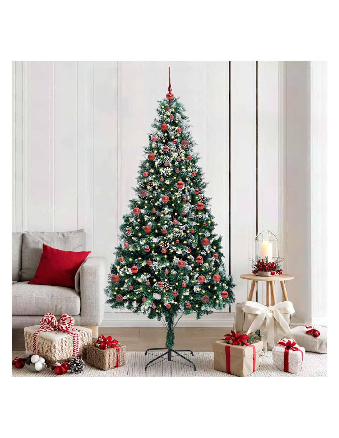 L'albero di Natale artificiale in PVC unisce il fascino del Natale con la comodità delle luci LED moderne. È progettato per interni e spazi esterni riparati, con una forma conica, pigne e neve bianca che creano un'atmosfera magica nel tuo soggiorno, giardino o terrazza. Questo albero stagionale porta lo spirito del Natale in ogni ambiente.