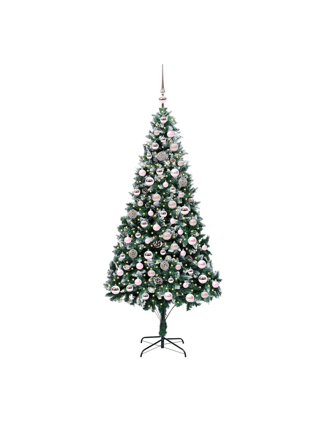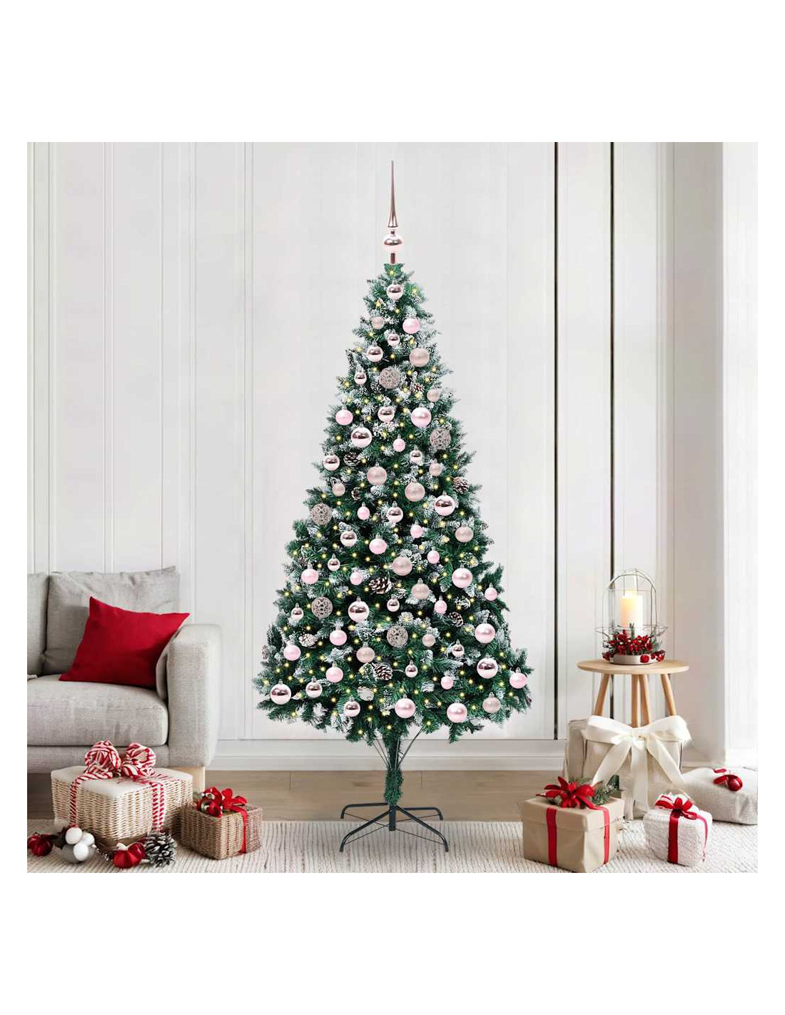 L'albero di Natale artificiale in PVC unisce il fascino del Natale con la comodità delle luci LED moderne. È progettato per interni e spazi esterni riparati, con una forma conica, pigne e neve bianca che creano un'atmosfera magica nel tuo soggiorno, giardino o terrazza. Questo albero stagionale porta lo spirito del Natale in ogni ambiente.
