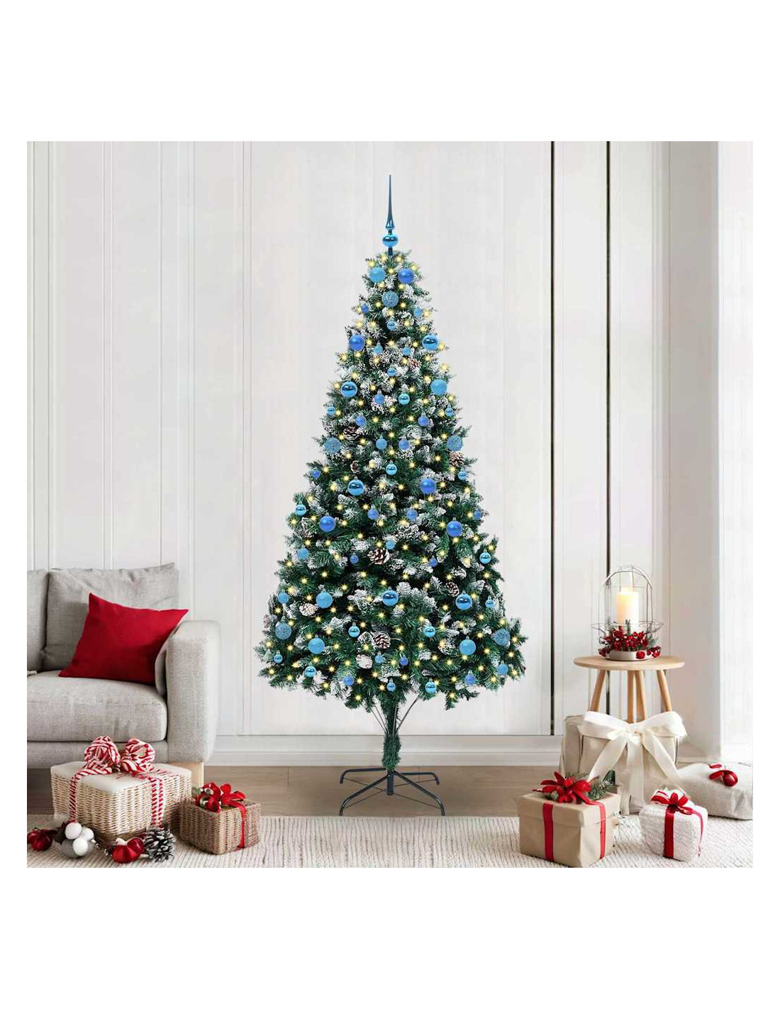 L'albero di Natale artificiale in PVC unisce il fascino del Natale con la comodità delle luci LED moderne. È progettato per interni e spazi esterni riparati, con una forma conica, pigne e neve bianca che creano un'atmosfera magica nel tuo soggiorno, giardino o terrazza. Questo albero stagionale porta lo spirito del Natale in ogni ambiente.