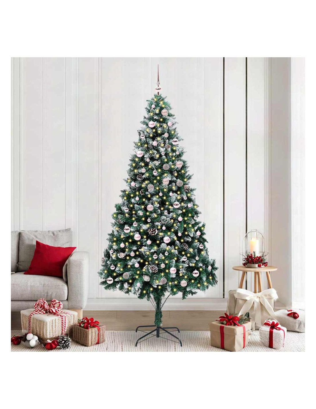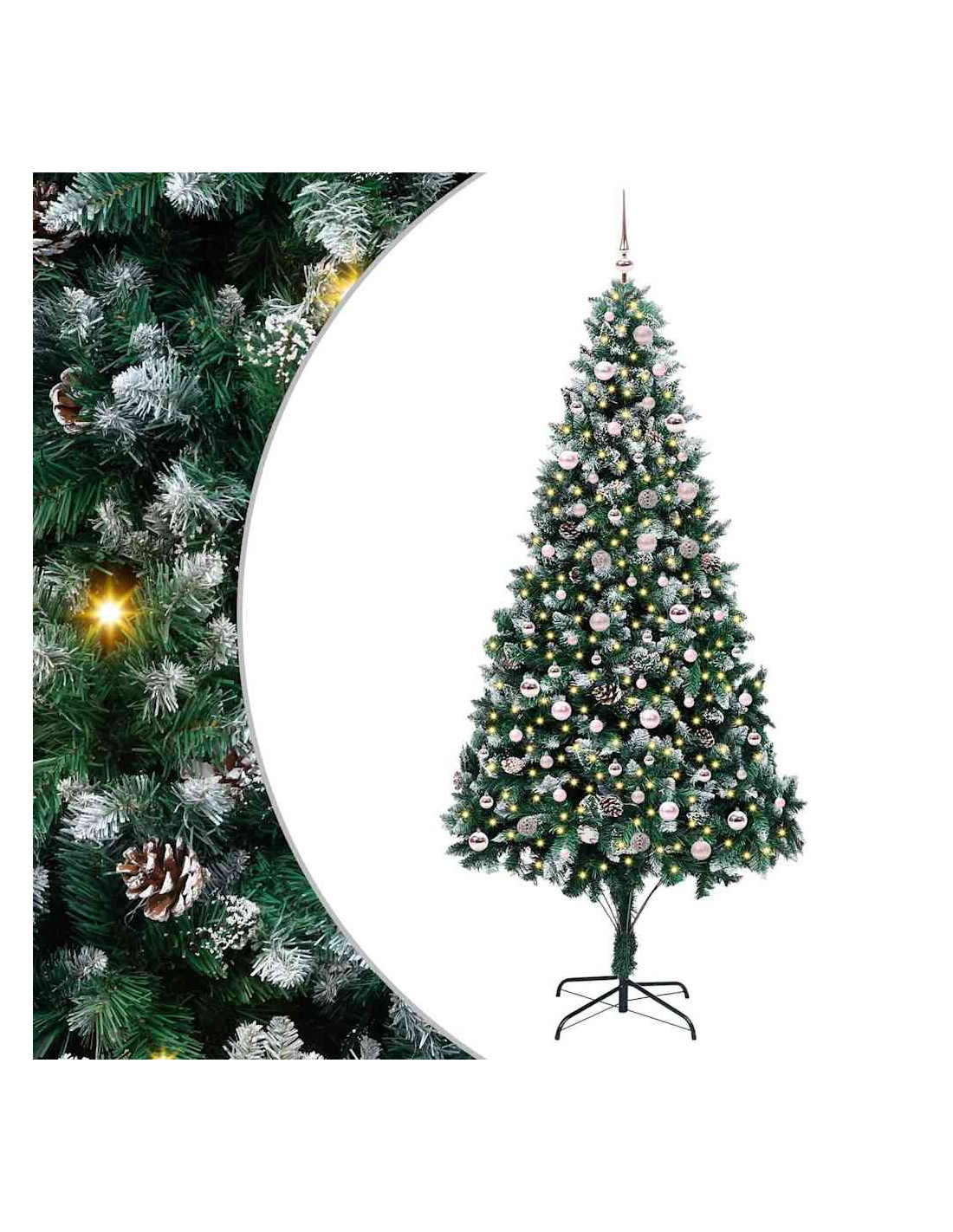 L'albero di Natale artificiale in PVC unisce il fascino del Natale con la comodità delle luci LED moderne. È progettato per interni e spazi esterni riparati, con una forma conica, pigne e neve bianca che creano un'atmosfera magica nel tuo soggiorno, giardino o terrazza. Questo albero stagionale porta lo spirito del Natale in ogni ambiente.