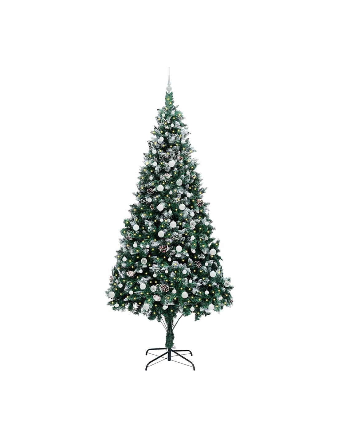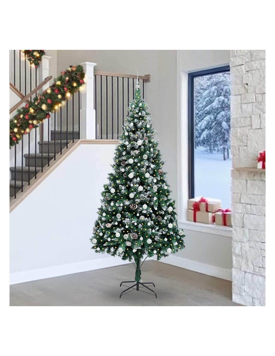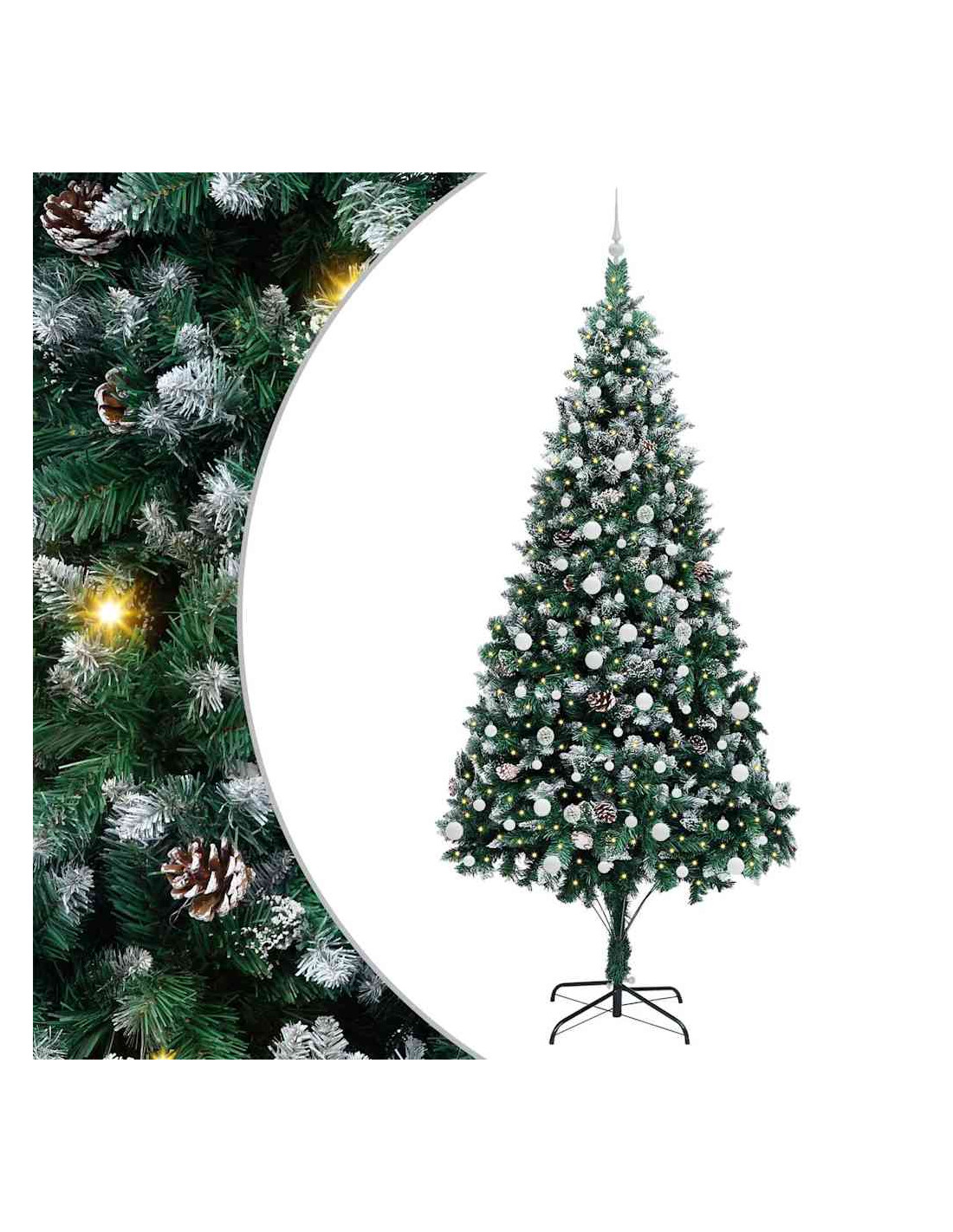 L'albero di Natale artificiale in PVC unisce il fascino del Natale con la comodità delle luci LED moderne. È progettato per interni e spazi esterni riparati, con una forma conica, pigne e neve bianca che creano un'atmosfera magica nel tuo soggiorno, giardino o terrazza. Questo albero stagionale porta lo spirito del Natale in ogni ambiente.
