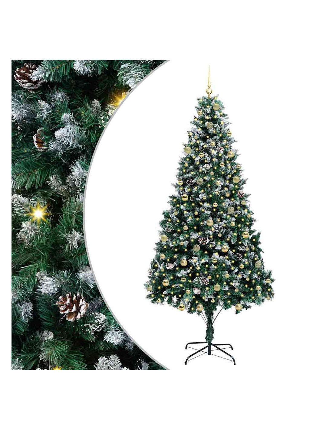 L'albero di Natale artificiale in PVC unisce il fascino del Natale con la comodità delle luci LED moderne. È progettato per interni e spazi esterni riparati, con una forma conica, pigne e neve bianca che creano un'atmosfera magica nel tuo soggiorno, giardino o terrazza. Questo albero stagionale porta lo spirito del Natale in ogni ambiente.