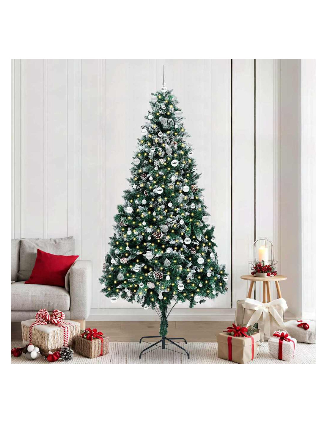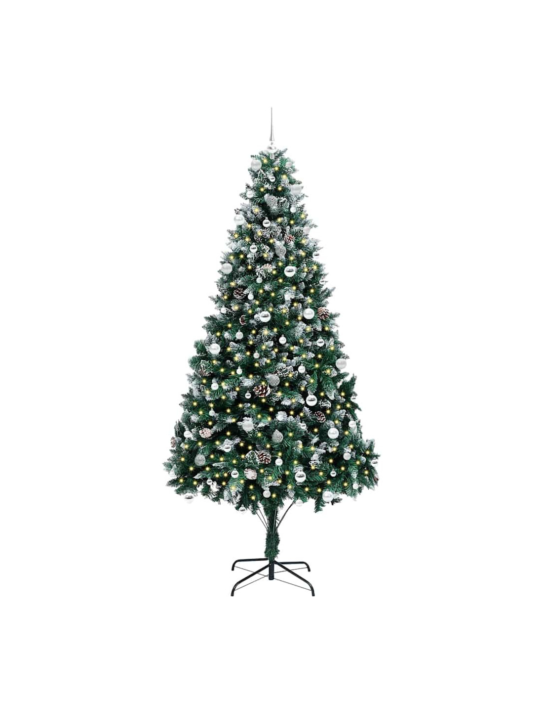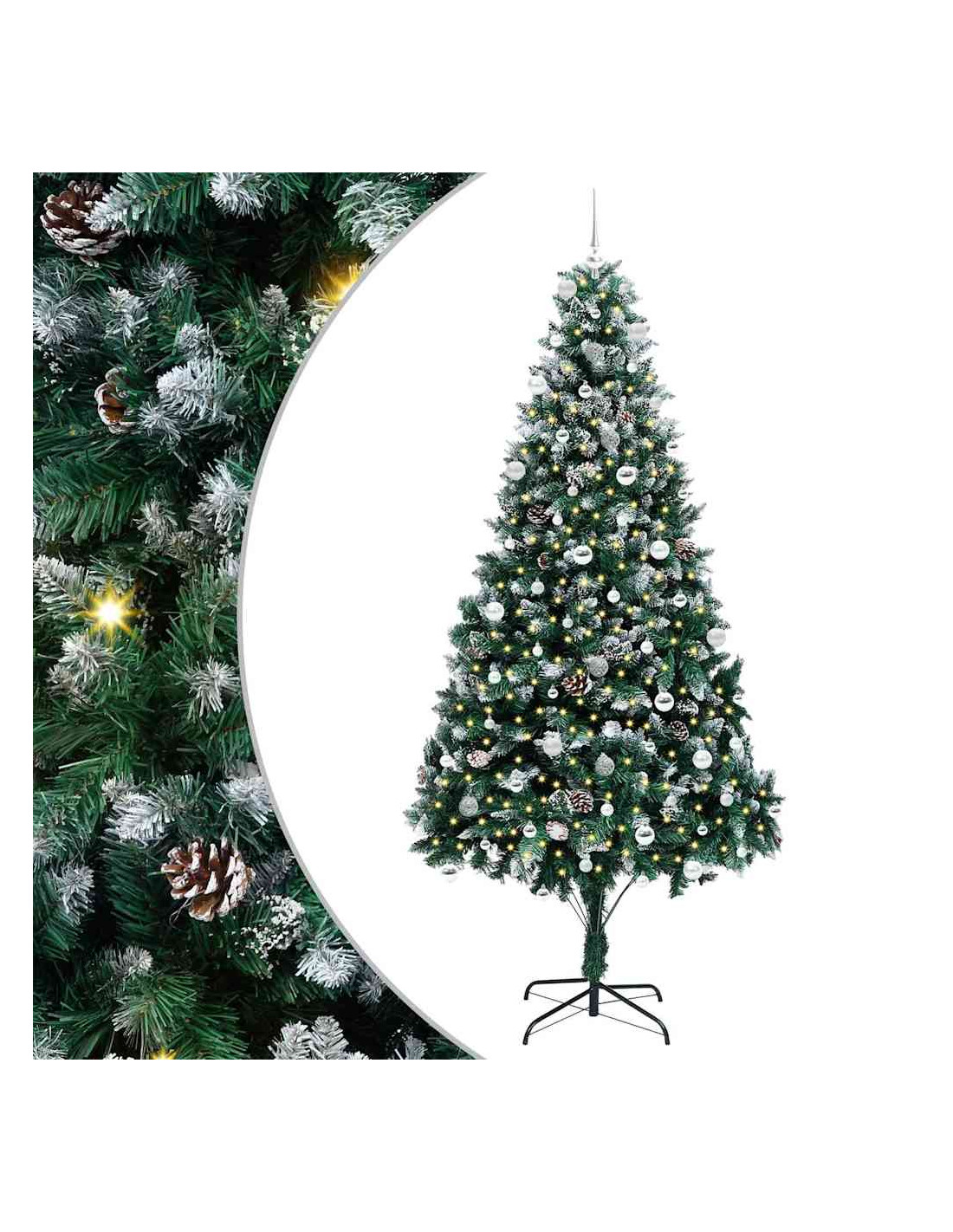 L'albero di Natale artificiale in PVC unisce il fascino del Natale con la comodità delle luci LED moderne. È progettato per interni e spazi esterni riparati, con una forma conica, pigne e neve bianca che creano un'atmosfera magica nel tuo soggiorno, giardino o terrazza. Questo albero stagionale porta lo spirito del Natale in ogni ambiente.