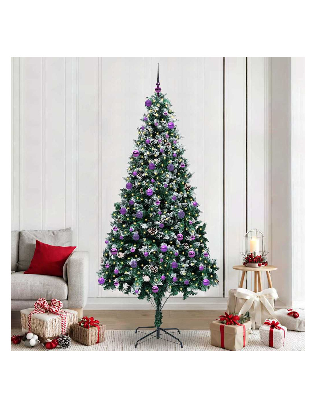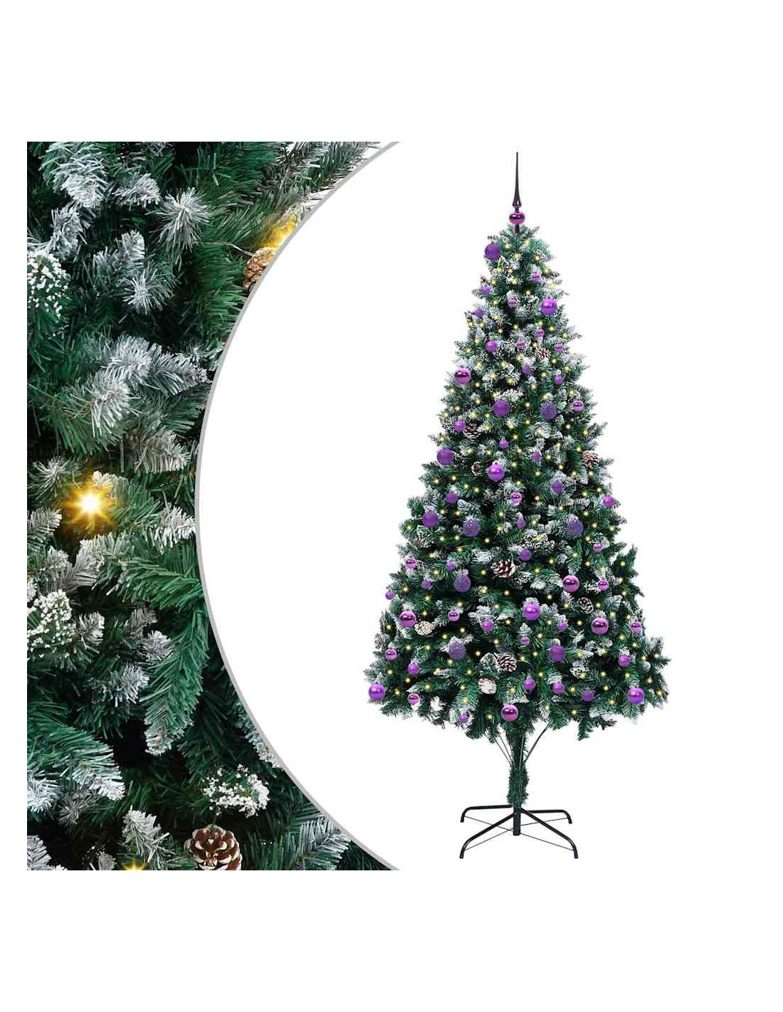 L'albero di Natale artificiale in PVC unisce il fascino del Natale con la comodità delle luci LED moderne. È progettato per interni e spazi esterni riparati, con una forma conica, pigne e neve bianca che creano un'atmosfera magica nel tuo soggiorno, giardino o terrazza. Questo albero stagionale porta lo spirito del Natale in ogni ambiente.