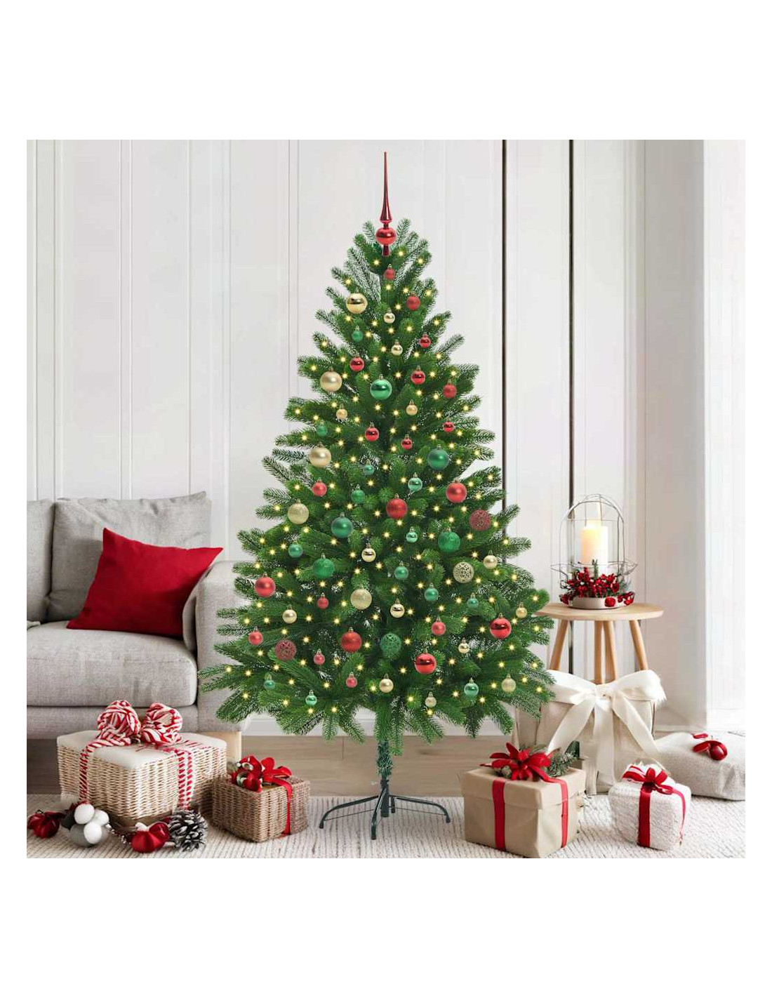 - Materiale in Polietilene: Realizzato in PE di alta qualità, l'albero è robusto e ha un aspetto realistico. Il polietilene è resistente e imita bene i rami di un albero reale, offrendo una decorazione che dura anni.