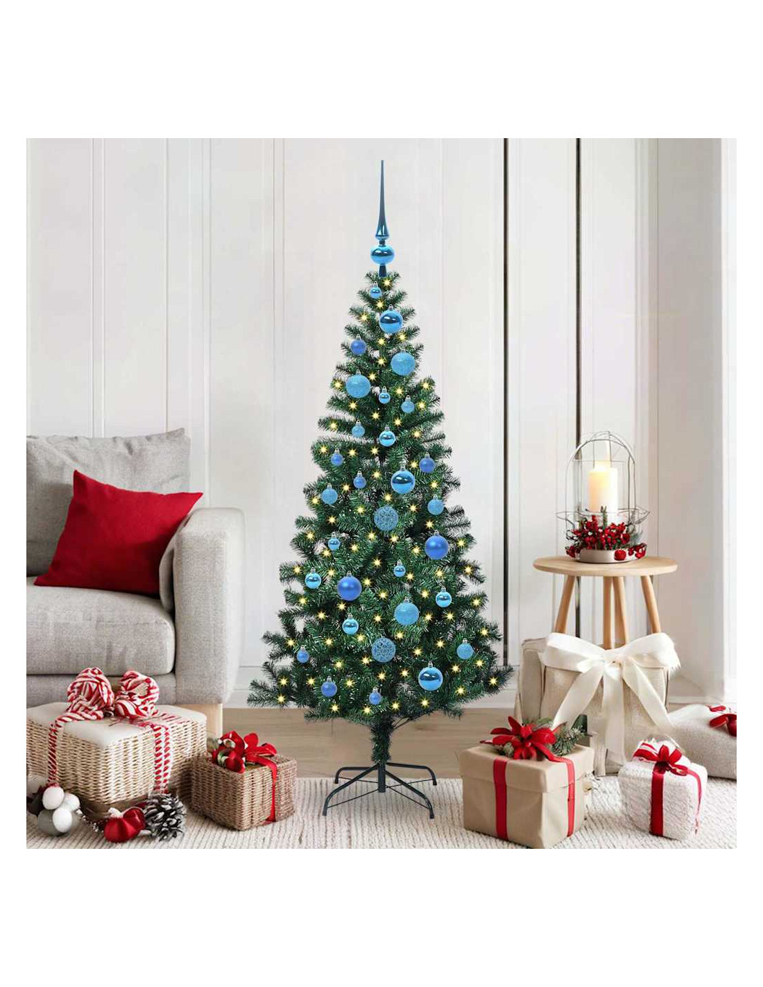 - Costruzione in PVC e Acciaio Questo albero, realizzato in PVC di alta qualità, è leggero ma resistente. I componenti in acciaio ne aumentano la stabilità, così è sempre dritto quando lo decoriamo. Questi materiali lo rendono robusto e duraturo, così puoi usarlo anno dopo anno senza troppa manutenzione.