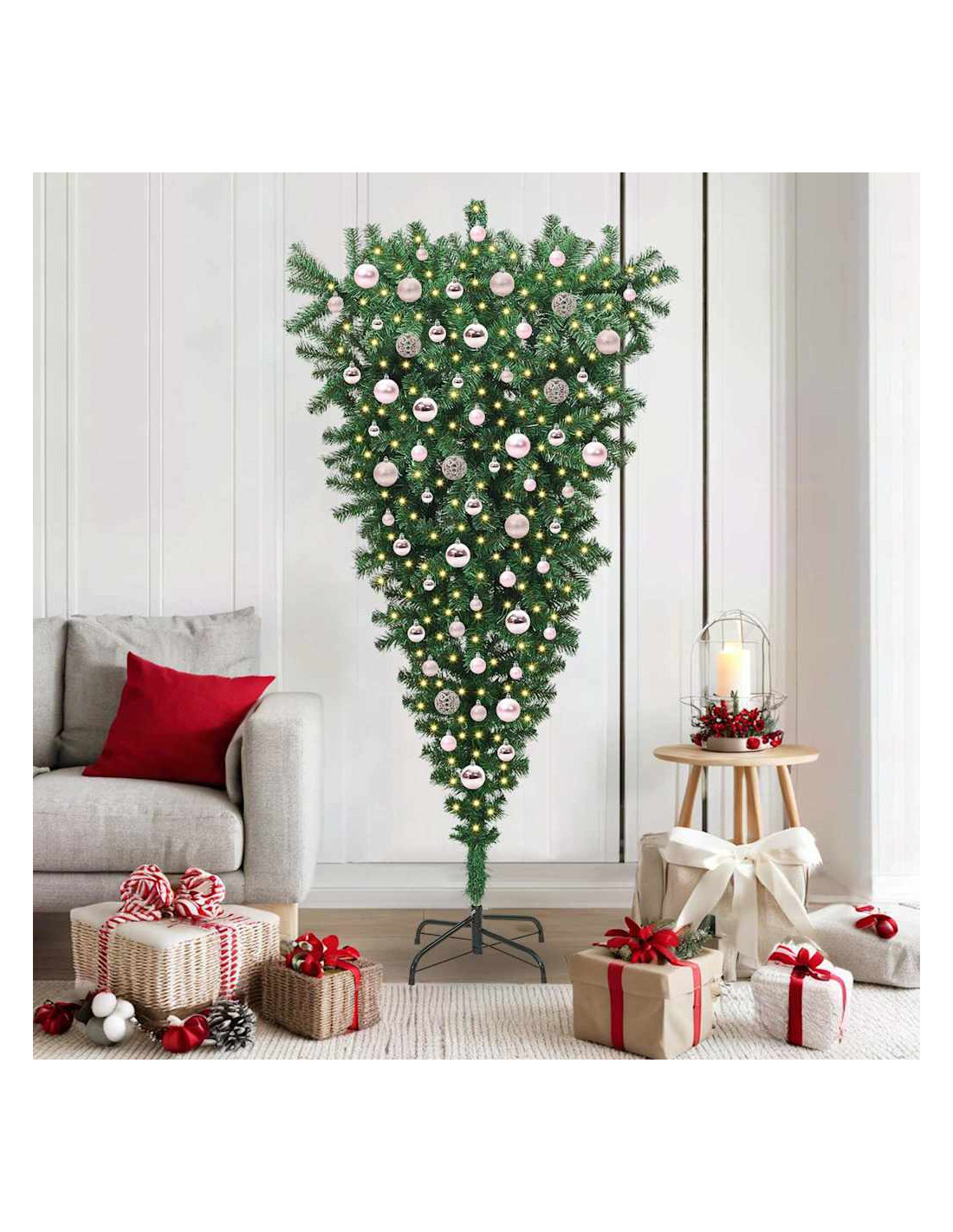 - Design Capovolto Questo albero di Natale capovolto si fa notare con il suo look unico, aggiungendo un tocco originale al tuo salotto. Ideale per chi vuole diversificare le decorazioni, mantiene gli elementi tradizionali e risparmia spazio per i regali, sarà sicuramente un ottimo spunto di conversazione.