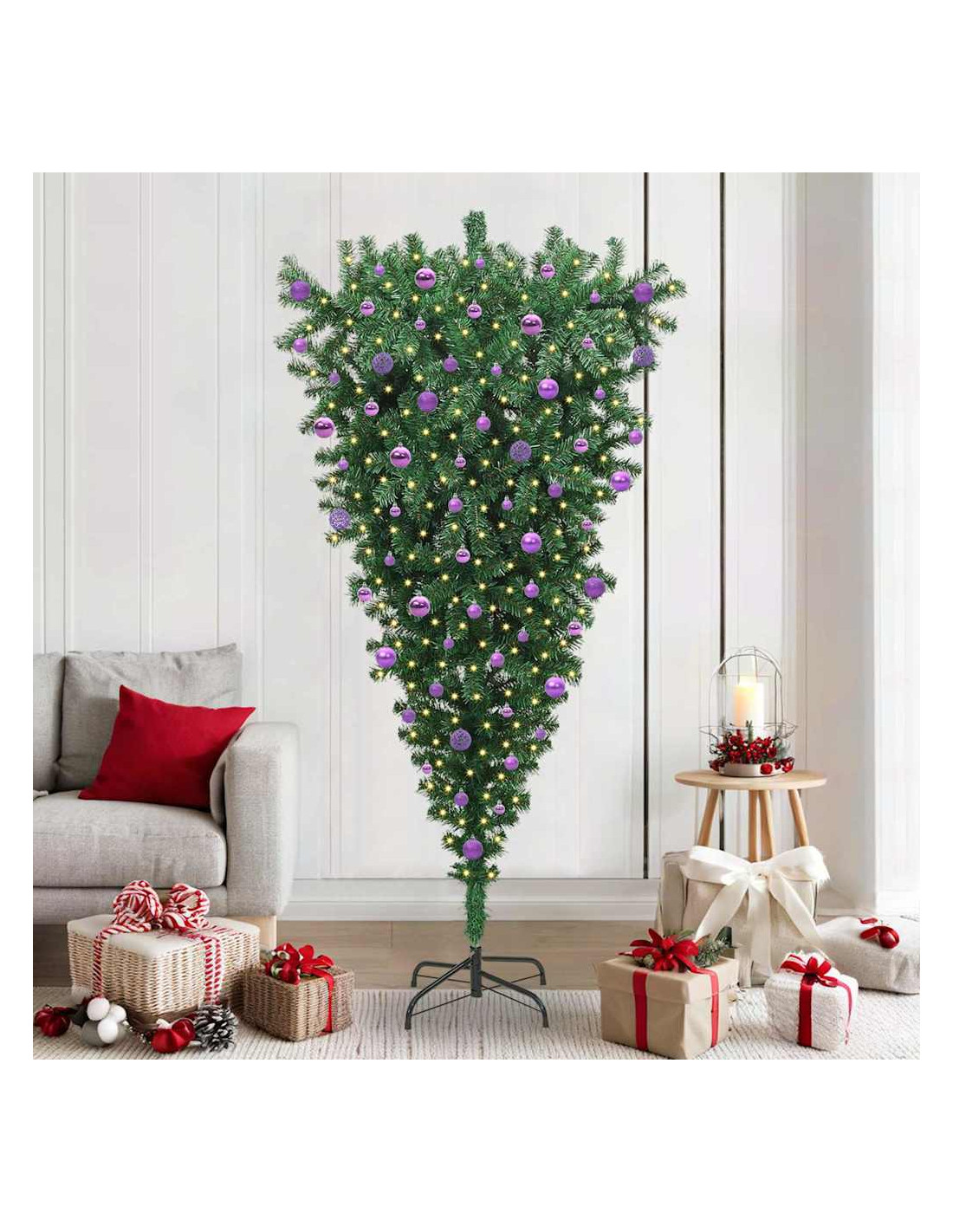 - Design Capovolto Questo albero di Natale capovolto attira l’attenzione con il suo look originale. È perfetto per chi vuole aggiungere qualcosa di diverso al proprio decoro festivo, reinterpretando la tradizione senza rinunciare agli elementi classici. Inoltre, occupa meno spazio per i regali e diventa un eccellente punto focale.