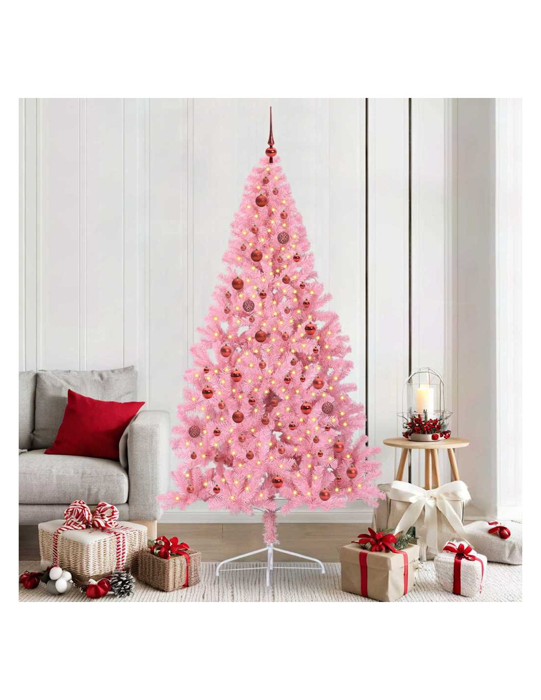 - Durabilità e Stile: Fatto in PVC, questo albero è resistente ai raggi UV e mantiene il suo look vivace durante le festività anche al sole. La solida struttura in acciaio lo rende stabile e la sua forma moderna si integra bene con il tuo arredamento.