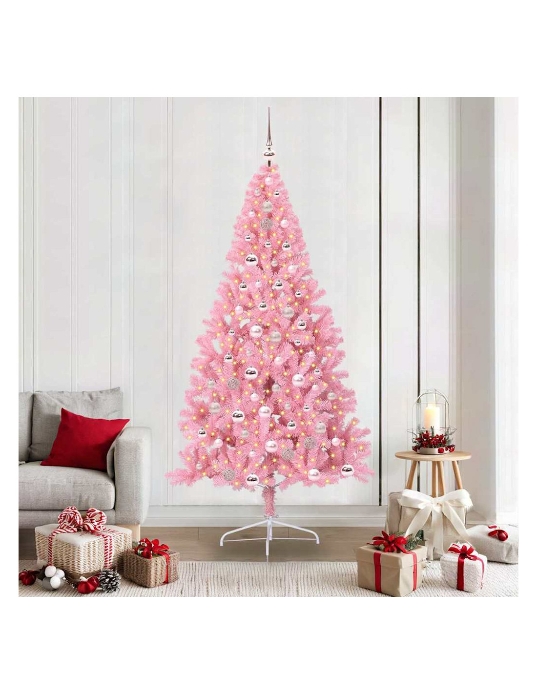 - Durabilità e Stile: Fatto in PVC, questo albero è resistente ai raggi UV e mantiene il suo look vivace durante le festività anche al sole. La solida struttura in acciaio lo rende stabile e la sua forma moderna si integra bene con il tuo arredamento.