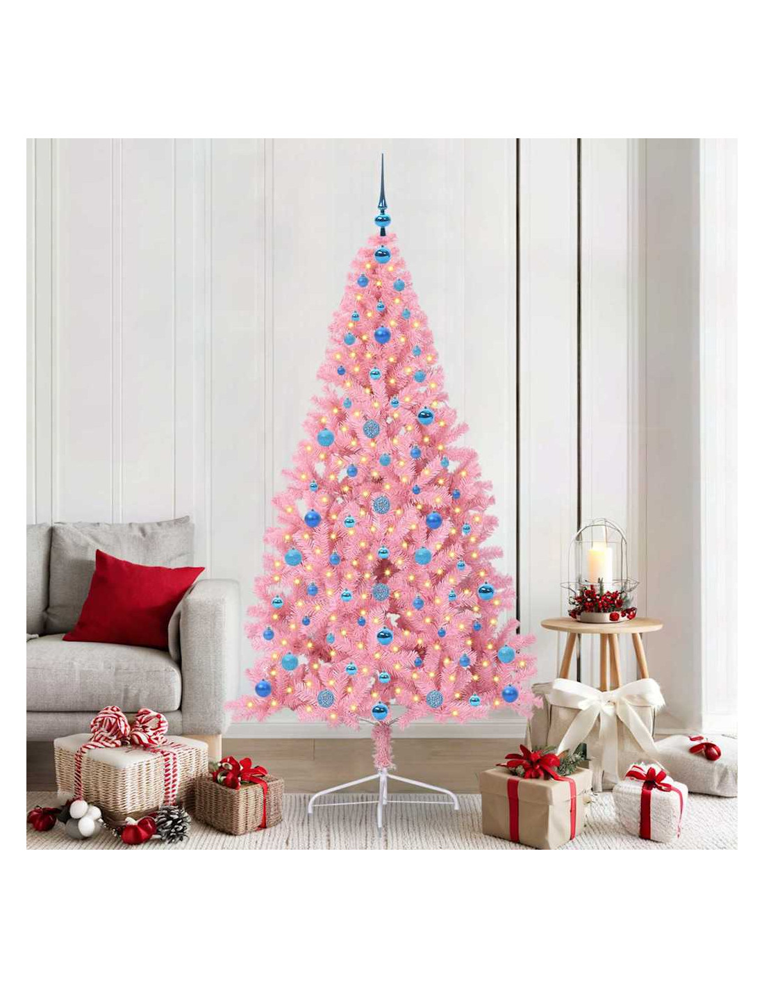 - Durabilità e Stile: Fatto in PVC, questo albero è resistente ai raggi UV e mantiene il suo look vivace durante le festività anche al sole. La solida struttura in acciaio lo rende stabile e la sua forma moderna si integra bene con il tuo arredamento.