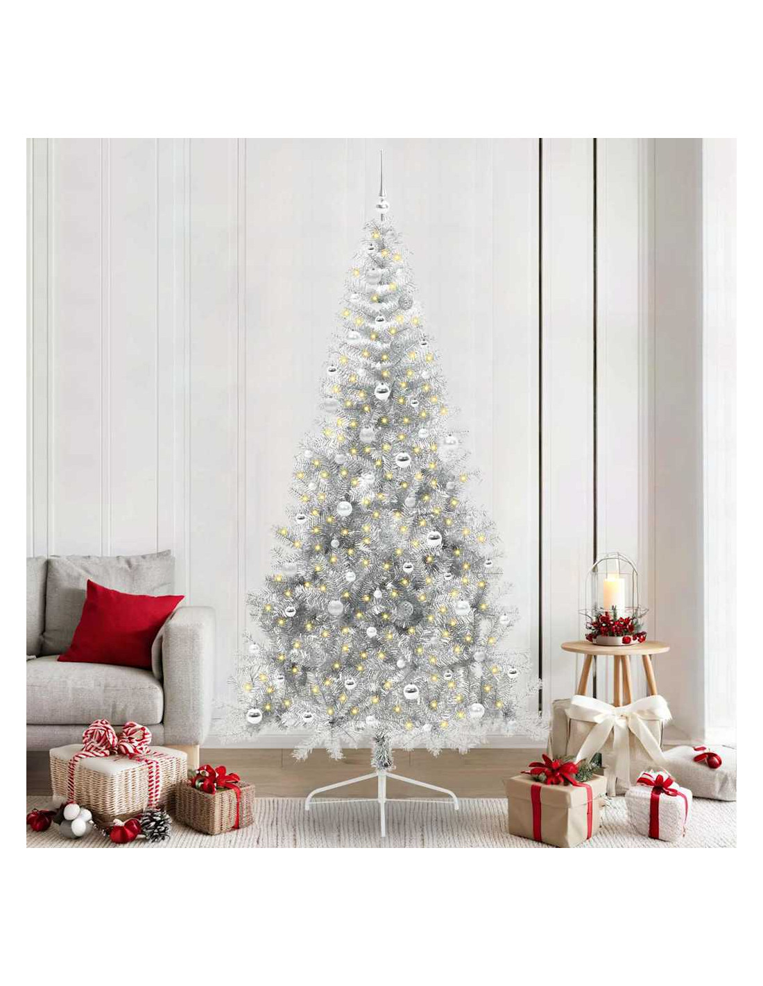- Durabilità e Stile: Fatto in PVC, questo albero è resistente ai raggi UV e mantiene il suo look vivace durante le festività anche al sole. La solida struttura in acciaio lo rende stabile e la sua forma moderna si integra bene con il tuo arredamento.