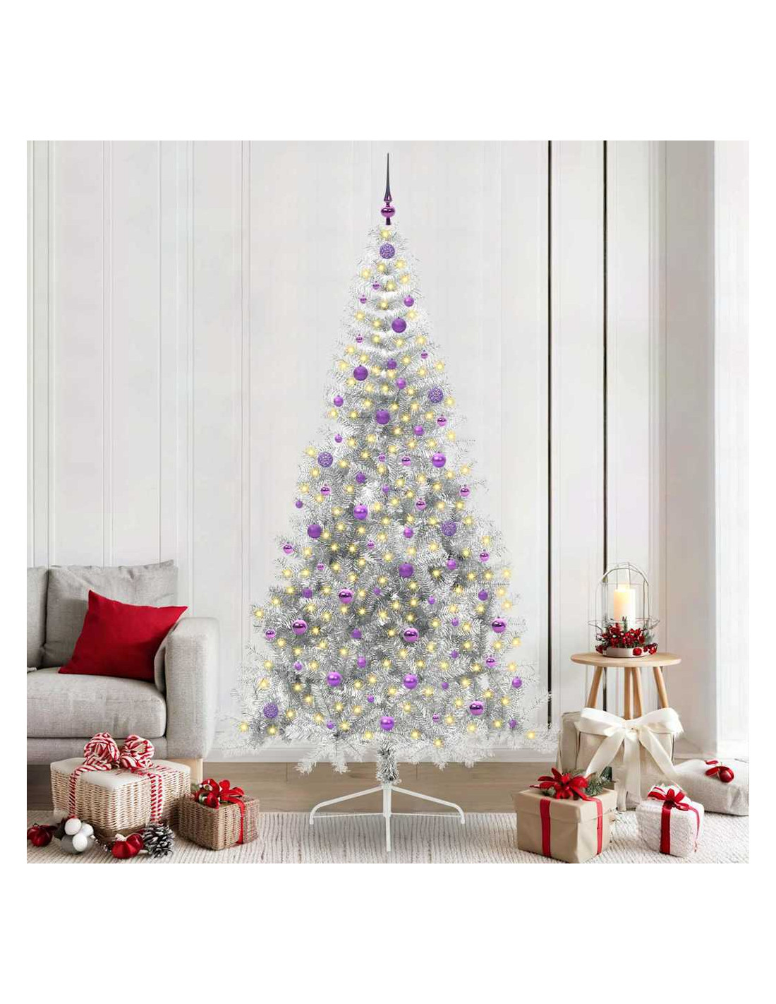 - Durabilità e Stile: Fatto in PVC, questo albero è resistente ai raggi UV e mantiene il suo look vivace durante le festività anche al sole. La solida struttura in acciaio lo rende stabile e la sua forma moderna si integra bene con il tuo arredamento.