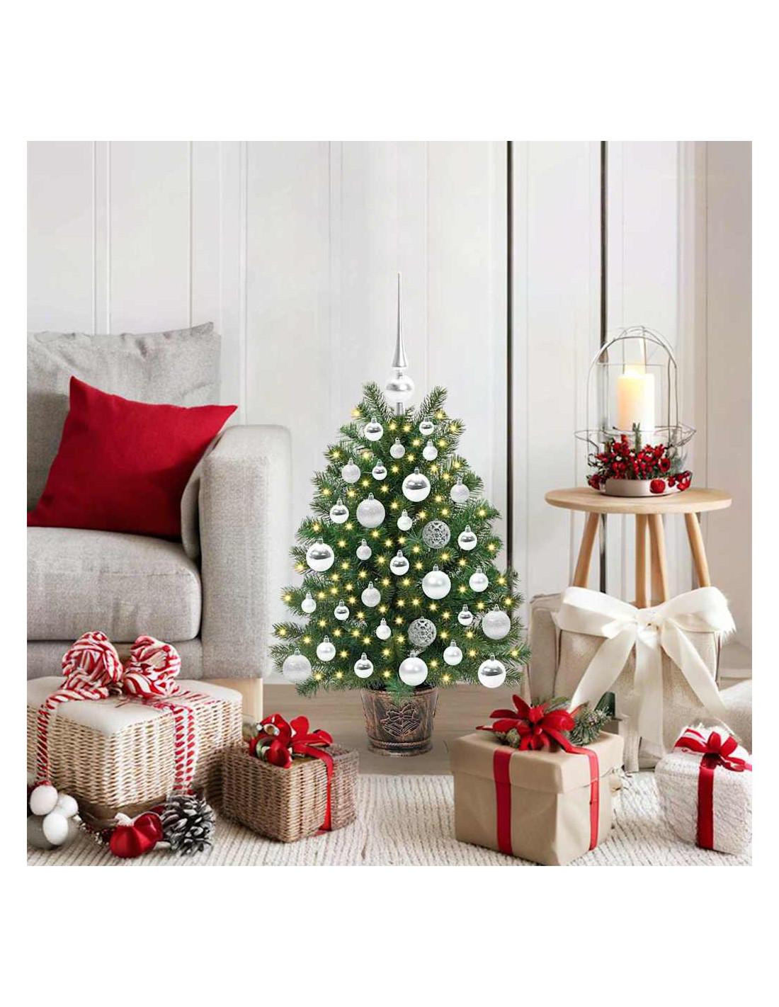 - Posizionamento Versatile: Perfetto per interni ed esterni, questo albero offre la massima versatilità per addobbare per le feste. Che sia in un angolo del soggiorno, su un patio o sul balcone, le sue dimensioni si adattano a vari spazi e stili. L'albero crea un legame festoso tra amici e famiglie nelle celebrazioni natalizie.