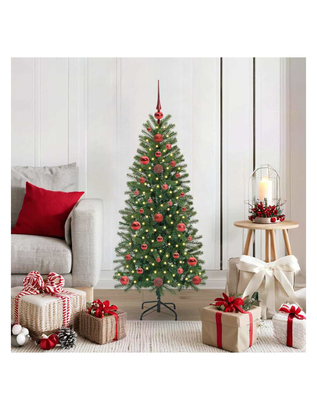 - Materiali PVC e PE: Questo albero è fatto con materiali di alta qualità, PE e PVC, che garantiscono durata e un aspetto naturale. Questi materiali sono anche ignifughi, offrendo un ulteriore livello di sicurezza per la tua decorazione natalizia. L'albero resterà verde e vibrante senza sbiadire, offrendo un aspetto sempreverde che dura per tutta la stagione. La combinazione di questi materiali rende le tue decorazioni festose affidabili e attraenti.