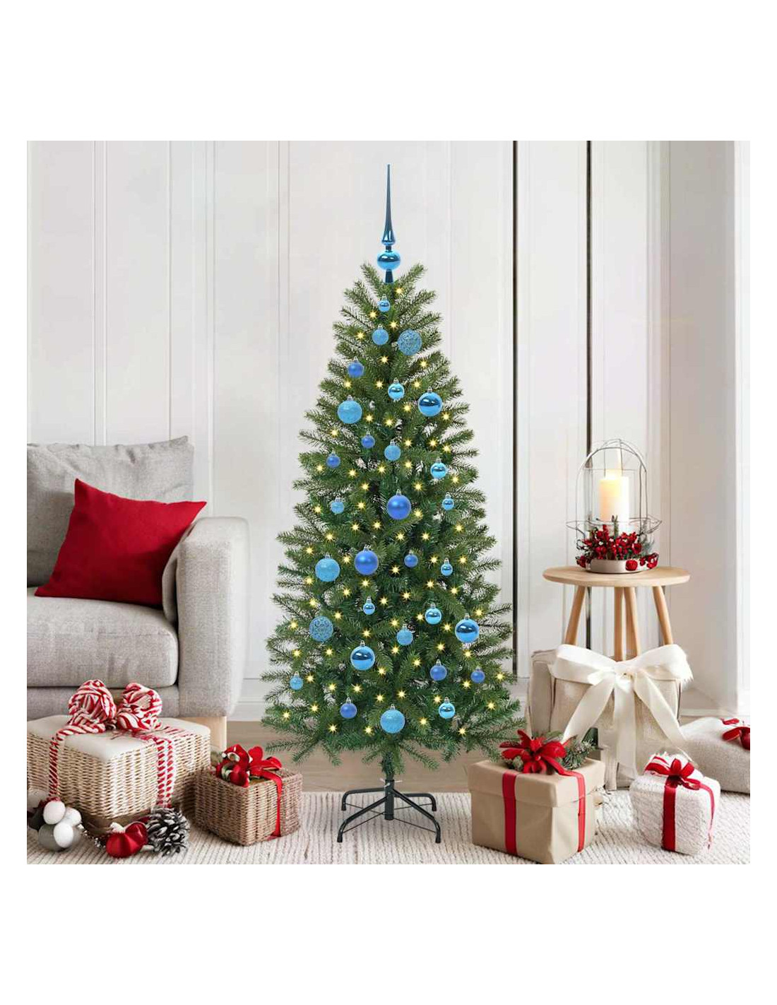 - Materiali PVC e PE: Questo albero è fatto con materiali di alta qualità, PE e PVC, che garantiscono durata e un aspetto naturale. Questi materiali sono anche ignifughi, offrendo un ulteriore livello di sicurezza per la tua decorazione natalizia. L'albero resterà verde e vibrante senza sbiadire, offrendo un aspetto sempreverde che dura per tutta la stagione. La combinazione di questi materiali rende le tue decorazioni festose affidabili e attraenti.