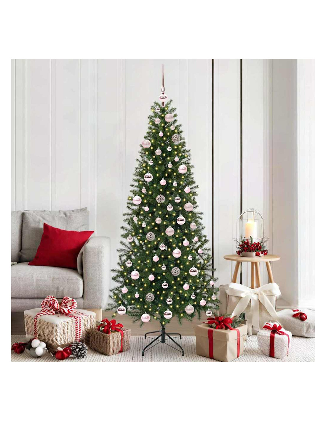 - Materiali PVC e PE: Questo albero è fatto con materiali di alta qualità, PE e PVC, che garantiscono durata e un aspetto naturale. Questi materiali sono anche ignifughi, offrendo un ulteriore livello di sicurezza per la tua decorazione natalizia. L'albero resterà verde e vibrante senza sbiadire, offrendo un aspetto sempreverde che dura per tutta la stagione. La combinazione di questi materiali rende le tue decorazioni festose affidabili e attraenti.