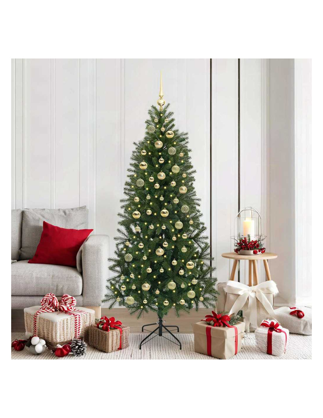 Questo Albero di Natale Artificiale è davvero elegante e combina un look moderno con un tocco tradizionale. La forma a cono ne accentua l'aspetto visivo e lo rende perfetto per essere decorato con luci LED bianche calde. Porta un'atmosfera festiva in qualsiasi stanza o sul balcone, creando un clima accogliente per il Natale. Con un tema natalizio, questo albero è adatto a molte occasioni festive e diventa un punto focale per la tua decorazione, sia dentro casa che all'esterno. Le sue linee semplici e pulite si adattano benissimo agli ambienti moderni, offrendo una soluzione pratica per le festività a famiglie, organizzatori di eventi e amanti delle feste.