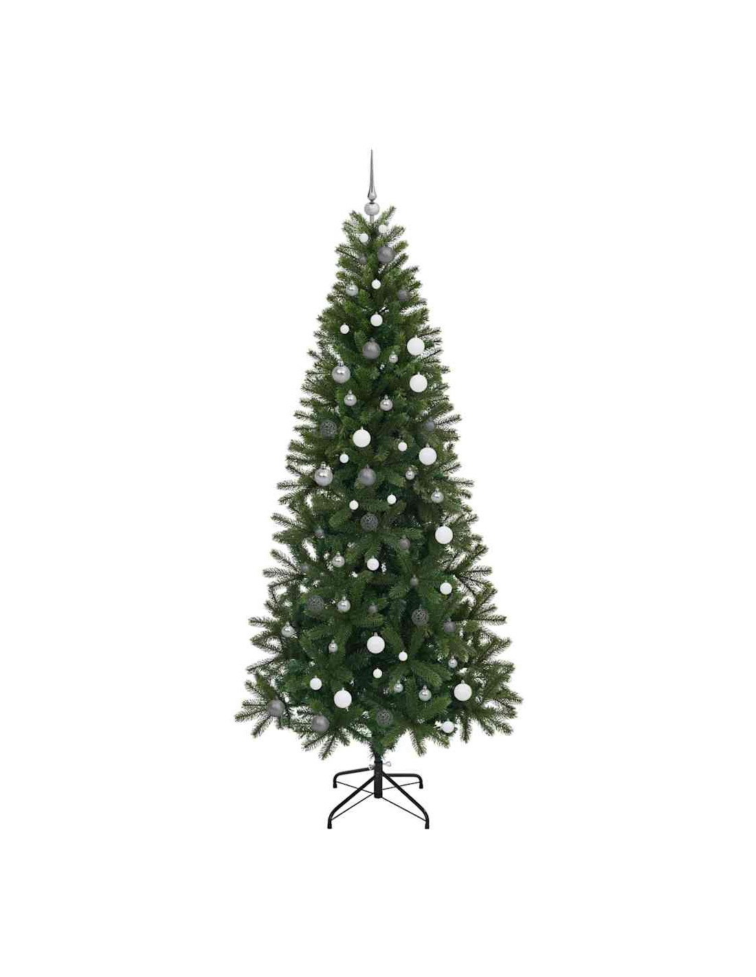 - Materiali PVC e PE: Questo albero è fatto con materiali di alta qualità, PE e PVC, che garantiscono durata e un aspetto naturale. Questi materiali sono anche ignifughi, offrendo un ulteriore livello di sicurezza per la tua decorazione natalizia. L'albero resterà verde e vibrante senza sbiadire, offrendo un aspetto sempreverde che dura per tutta la stagione. La combinazione di questi materiali rende le tue decorazioni festose affidabili e attraenti.