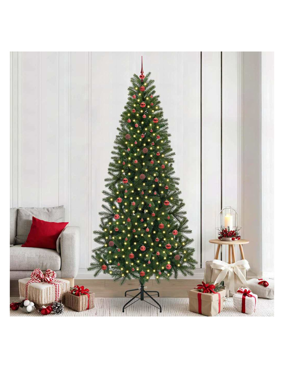 - Materiali PVC e PE: Questo albero è fatto con materiali di alta qualità, PE e PVC, che garantiscono durata e un aspetto naturale. Questi materiali sono anche ignifughi, offrendo un ulteriore livello di sicurezza per la tua decorazione natalizia. L'albero resterà verde e vibrante senza sbiadire, offrendo un aspetto sempreverde che dura per tutta la stagione. La combinazione di questi materiali rende le tue decorazioni festose affidabili e attraenti.