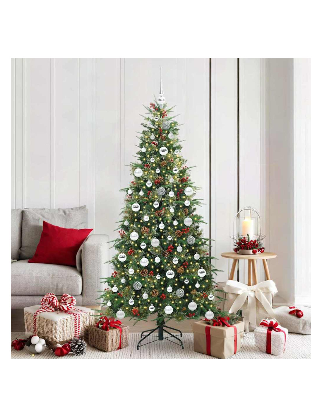 Questa decorazione natalizia moderna ha un design unico a forma di cono, perfetto per rendere più festoso qualsiasi spazio, sia interno che esterno. È realizzata in materiali PVC e PE, offrendo una superficie resistente allo sbiadimento che mantiene il suo fascino per tutta la stagione.