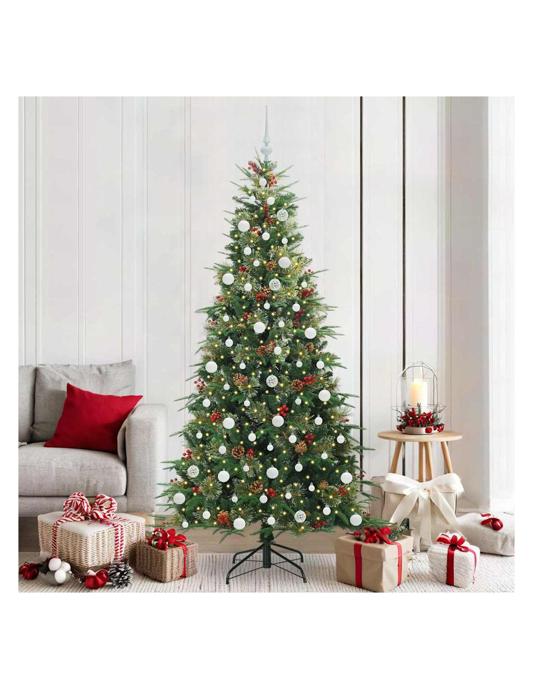 Questa decorazione natalizia moderna ha un design unico a forma di cono, perfetto per rendere più festoso qualsiasi spazio, sia interno che esterno. È realizzata in materiali PVC e PE, offrendo una superficie resistente allo sbiadimento che mantiene il suo fascino per tutta la stagione.