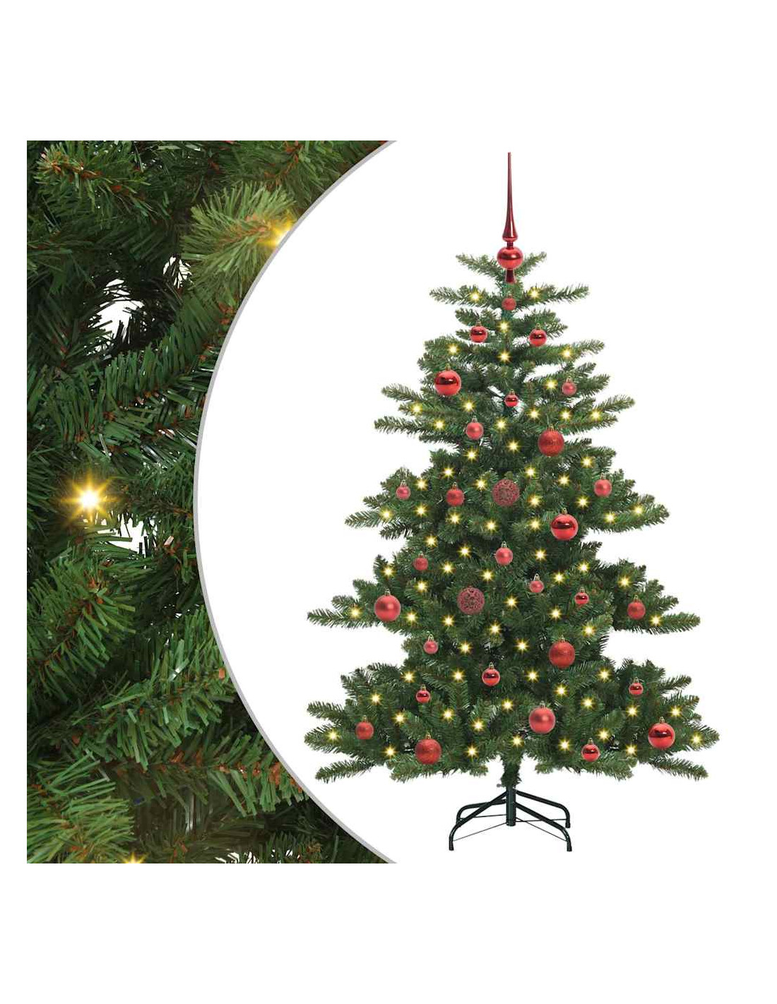- Materiali: Realizzato in PVC resistente, questo albero ha protezione UV per sembrare sempre fresco, sia all’interno che all’esterno. Aggiunto a plastica durevole, dura a lungo anche durante le festività.