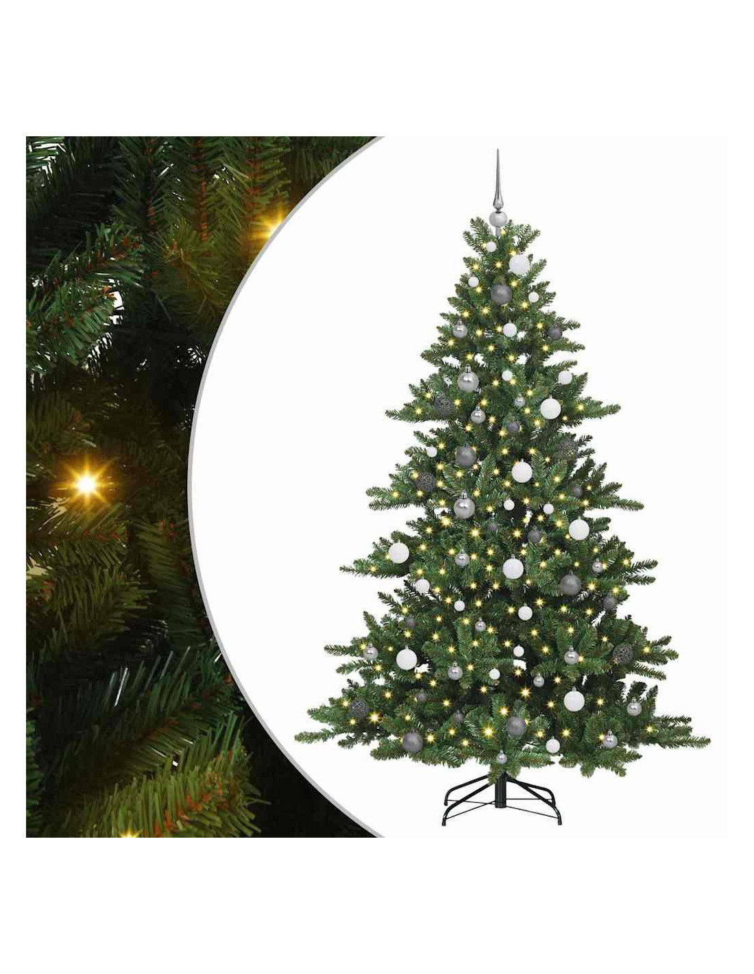 Questo albero di Natale artificiale con rami pieghevoli è un simbolo di gioia festiva, pensato per portare calore e luce nel tuo spazio. Con un design moderno e una forma a cono, questo pezzo decorativo unisce bellezza e funzionalità. È perfetto per chi cerca praticità e stile, rendendolo ideale per le sale da pranzo, con un tocco di spirito natalizio senza sforzi. Abbellito con luci LED bianche calde, brilla magnificamente, creando un'atmosfera accogliente per tutta la stagione.