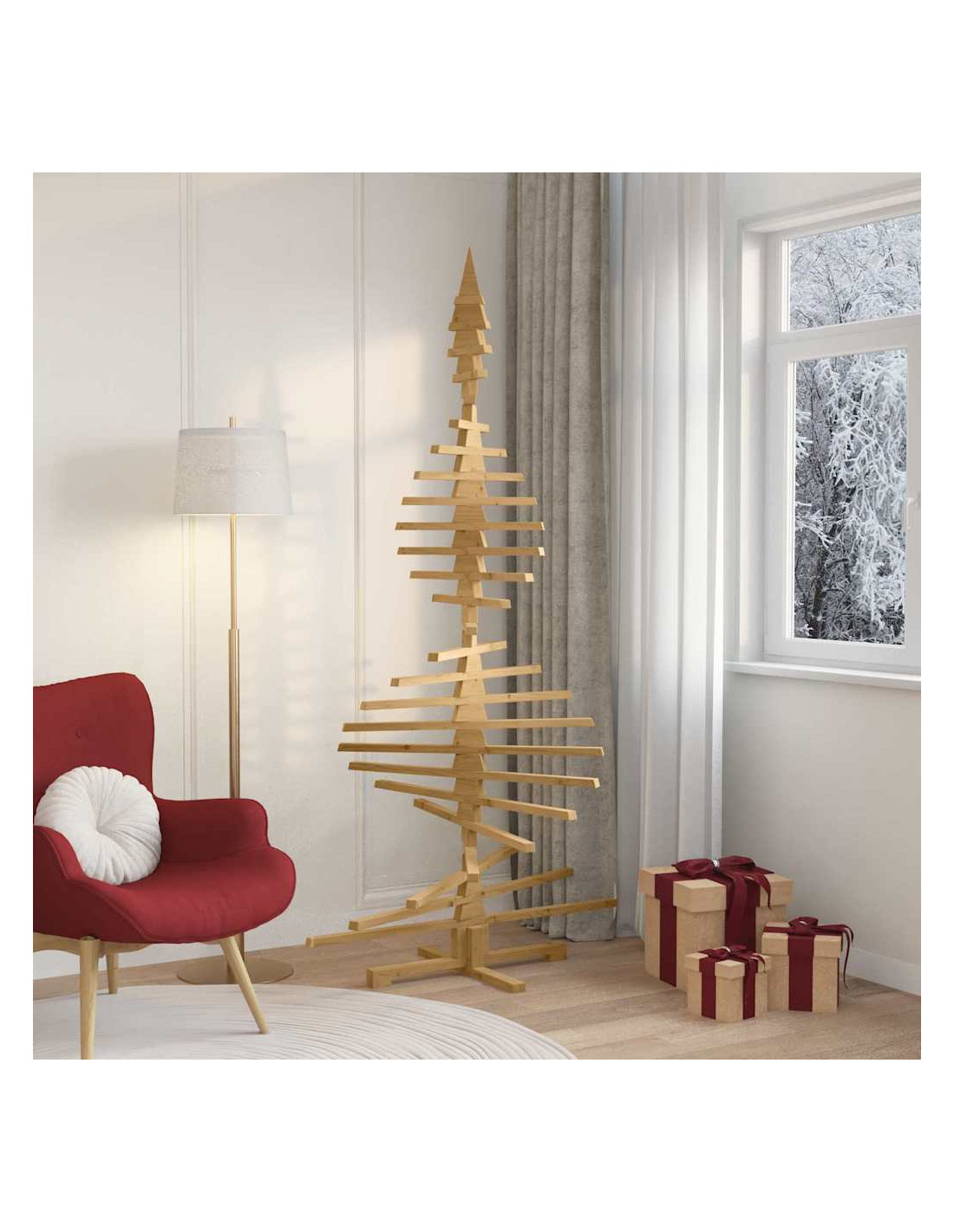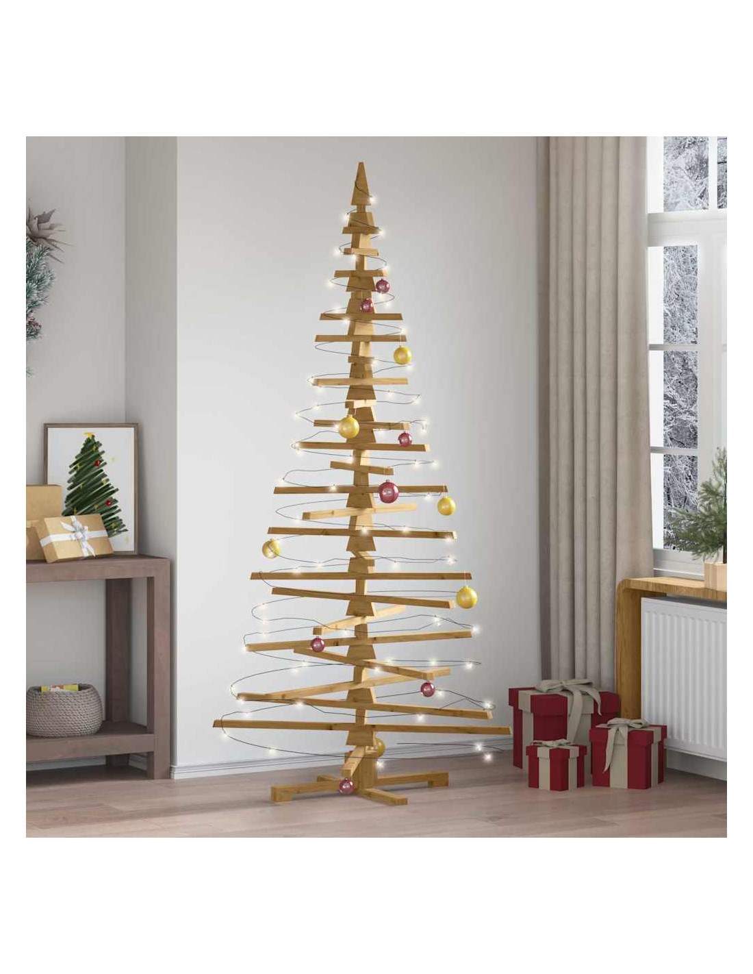 - Legno Massello di Pino: Questo albero è fatto in legno massello di pino, resistente e duraturo, così puoi godertelo per molte festività a venire. La sua texture naturale e liscia aggiunge un tocco elegante che si sposa bene con vari stili di arredamento.