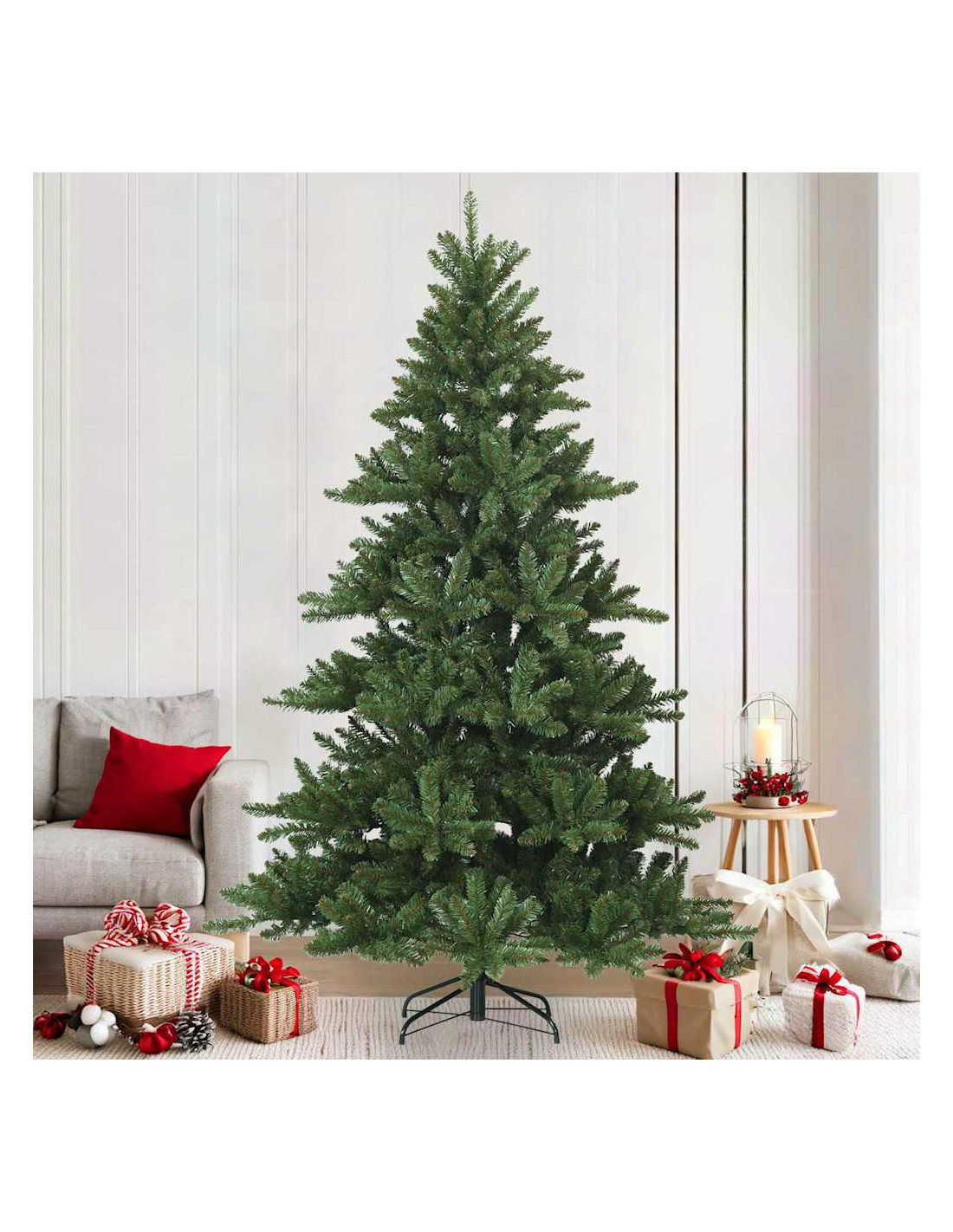 Questo Albero di Natale Moderno Artificiale con Rami Cernier è tutto su semplicità e funzionalità, proprio come fa il design contemporaneo con decorazioni minimali. È ideale per salotti e giardini, offrendo il tocco festivo perfetto con le sue foglie in PVC che sembrano degli alberi veri. Si integra bene negli interni moderni, portando lo spirito natalizio ovunque senza il fastidio di un albero vivo. Grazie alla sua adattabilità, lo puoi utilizzare sia dentro casa che in spazi esterni riparati.