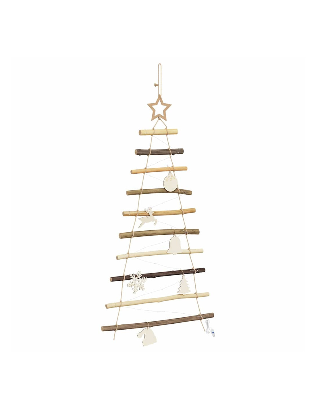 - Legno massiccio di frassino Questo Albero di Natale Appeso è fatto con cura in legno massiccio di frassino, con una bella tonalità marrone che si sposa bene con vari stili di arredamento. Questo materiale robusto assicura che l'albero si distingua per aspetto e durata.
