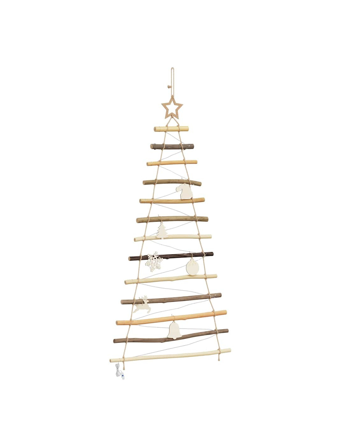 - Legno massiccio di frassino Questo Albero di Natale Appeso è fatto con cura in legno massiccio di frassino, con una bella tonalità marrone che si sposa bene con vari stili di arredamento. Questo materiale robusto assicura che l'albero si distingua per aspetto e durata.
