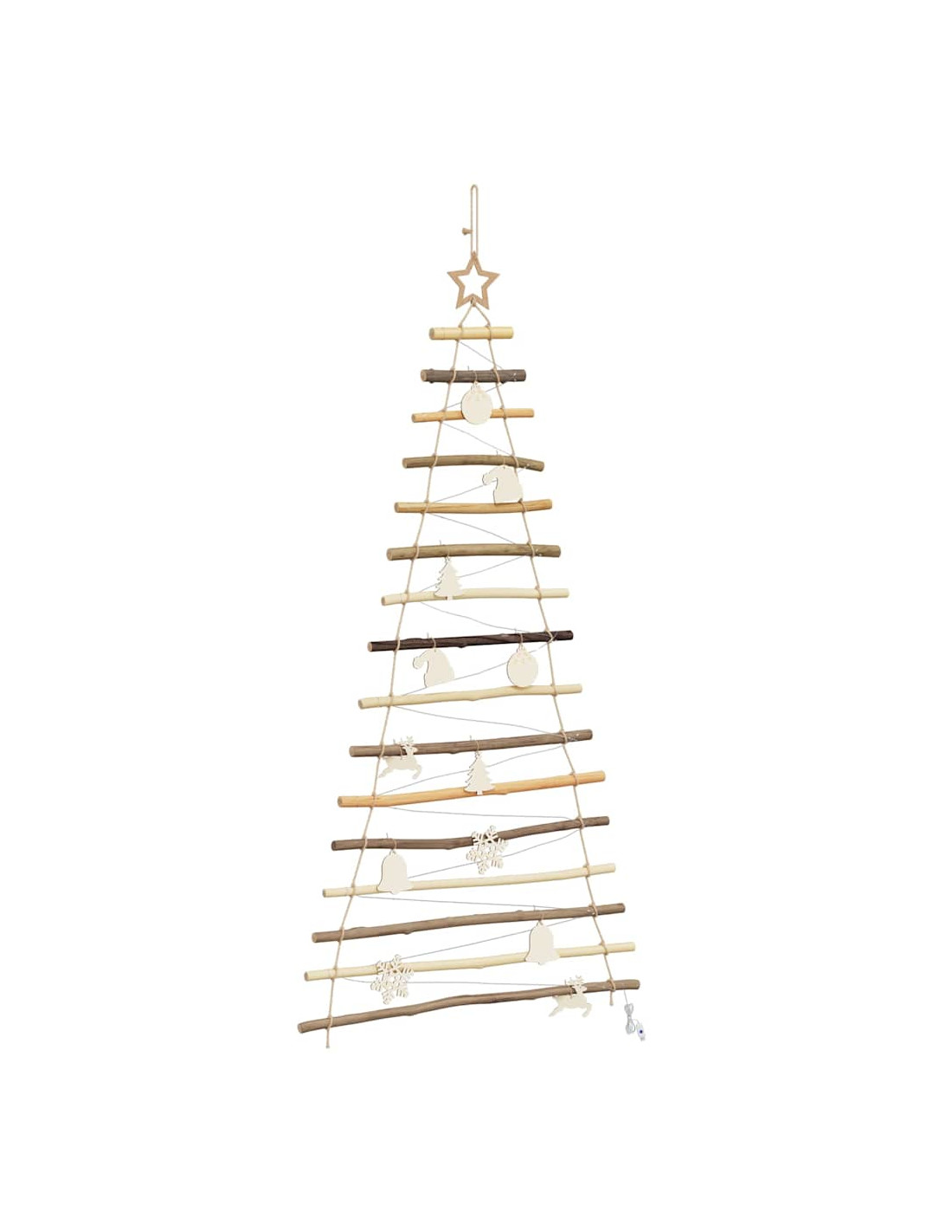 - Legno massiccio di frassino Questo Albero di Natale Appeso è fatto con cura in legno massiccio di frassino, con una bella tonalità marrone che si sposa bene con vari stili di arredamento. Questo materiale robusto assicura che l'albero si distingua per aspetto e durata.