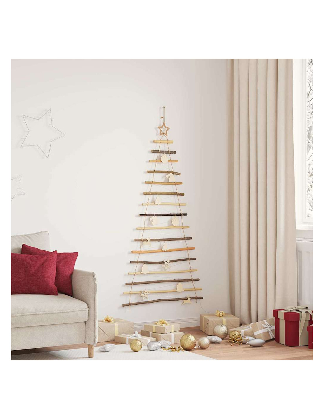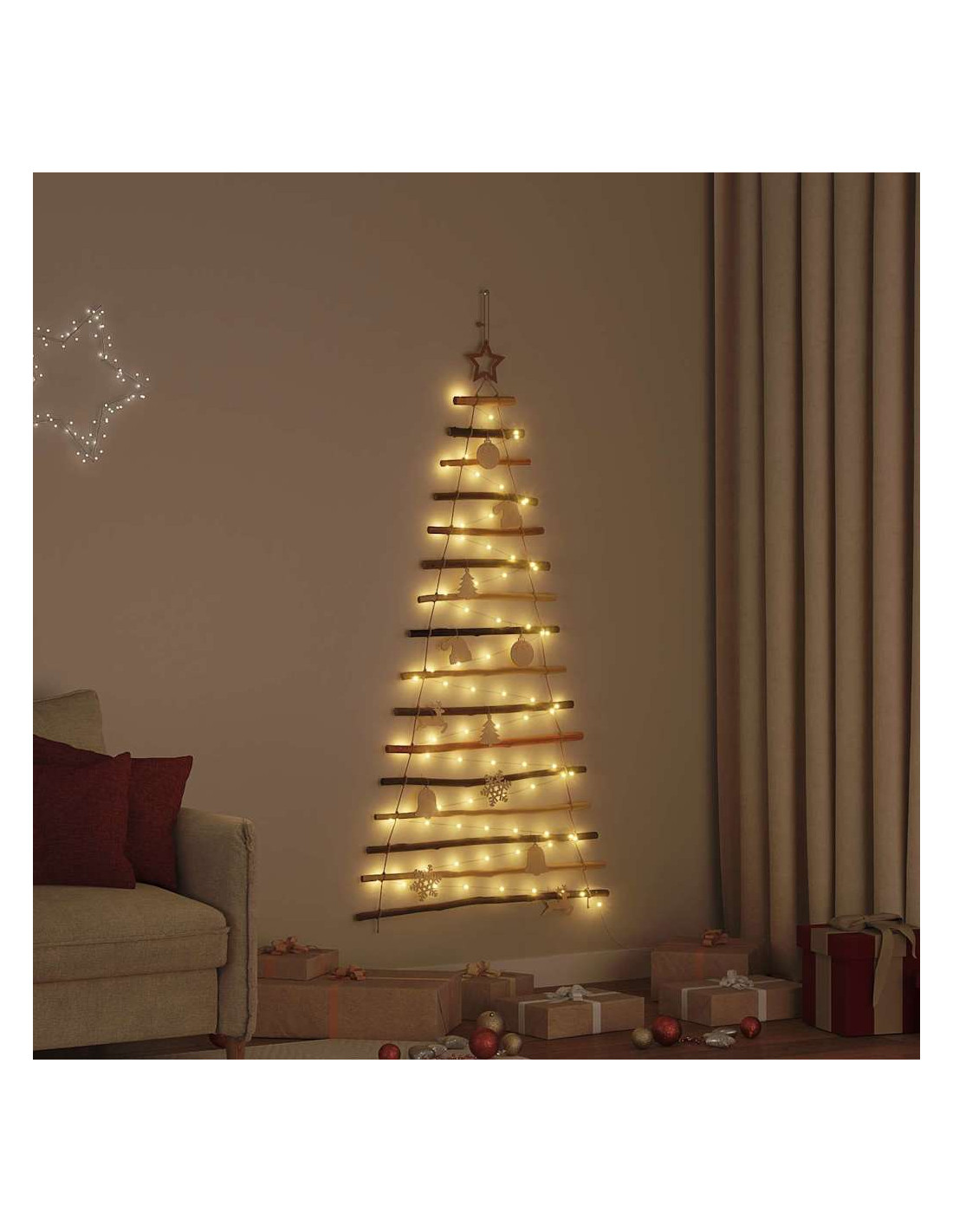 Questo Albero di Natale Appeso è un simbolo di eleganza con il suo design semplice e moderno. È pensato per abbellire qualsiasi soggiorno o spazio esterno riparato. È un'alternativa originale e stilosa agli alberi di Natale normali. Puoi appenderlo facilmente a pareti o porte per creare un'atmosfera festosa che coinvolge i sensi, mescolando praticità e un tocco di natura.