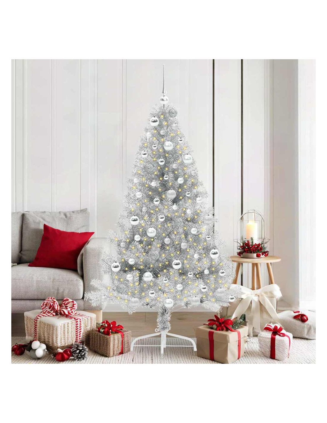 - Durabilità e Stile: Fatto in PVC, questo albero è resistente ai raggi UV e mantiene il suo look vivace durante le festività anche al sole. La solida struttura in acciaio lo rende stabile e la sua forma moderna si integra bene con il tuo arredamento.
