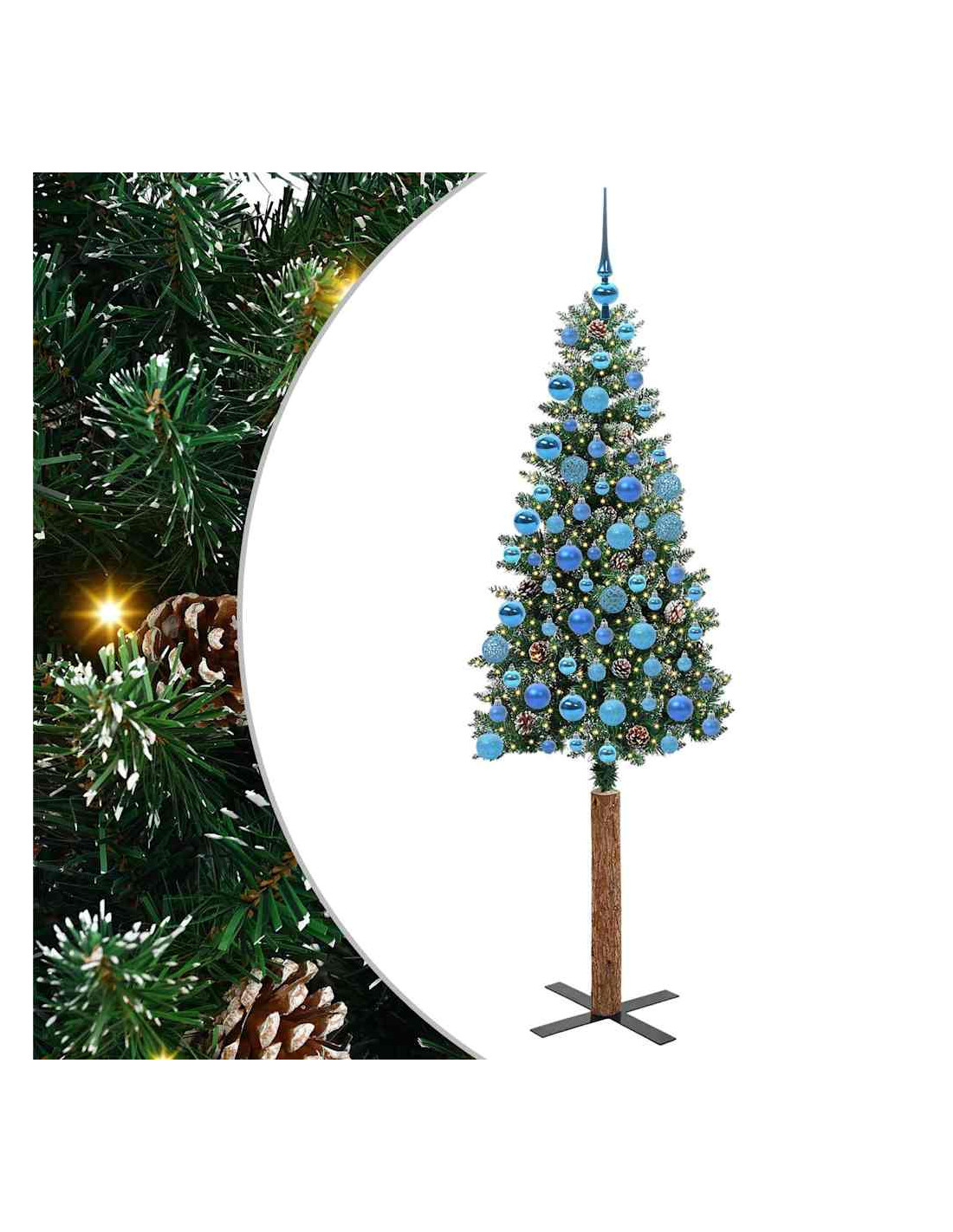 - Decorativo con pigne e palline ornamentali, rami realistici con neve fresca, tronco in legno reale