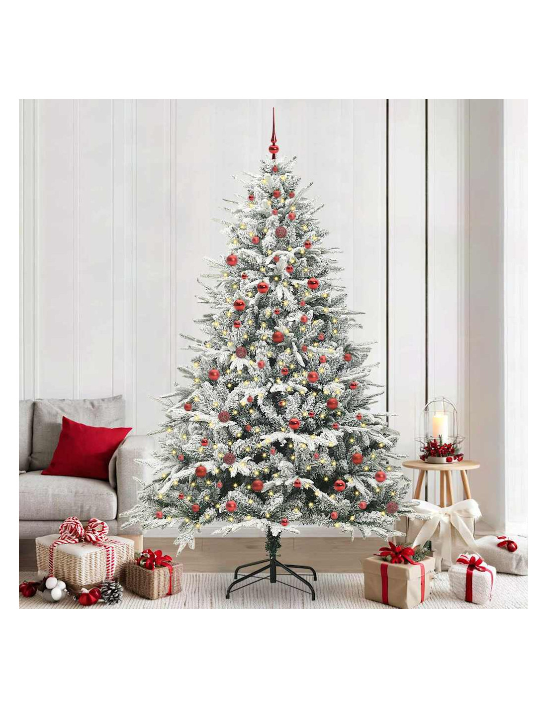- Costruzione: L'Albero di Natale Artificiale Moderno è fatto di PVC di alta qualità, resistente e con un fogliame realistico. Questa combinazione offre durata, mantenendo l'aspetto di un albero vero. Un robusto metallo dà ulteriore supporto, mescolando efficienza ed eleganza, e resiste bene sia all'interno che all'esterno.