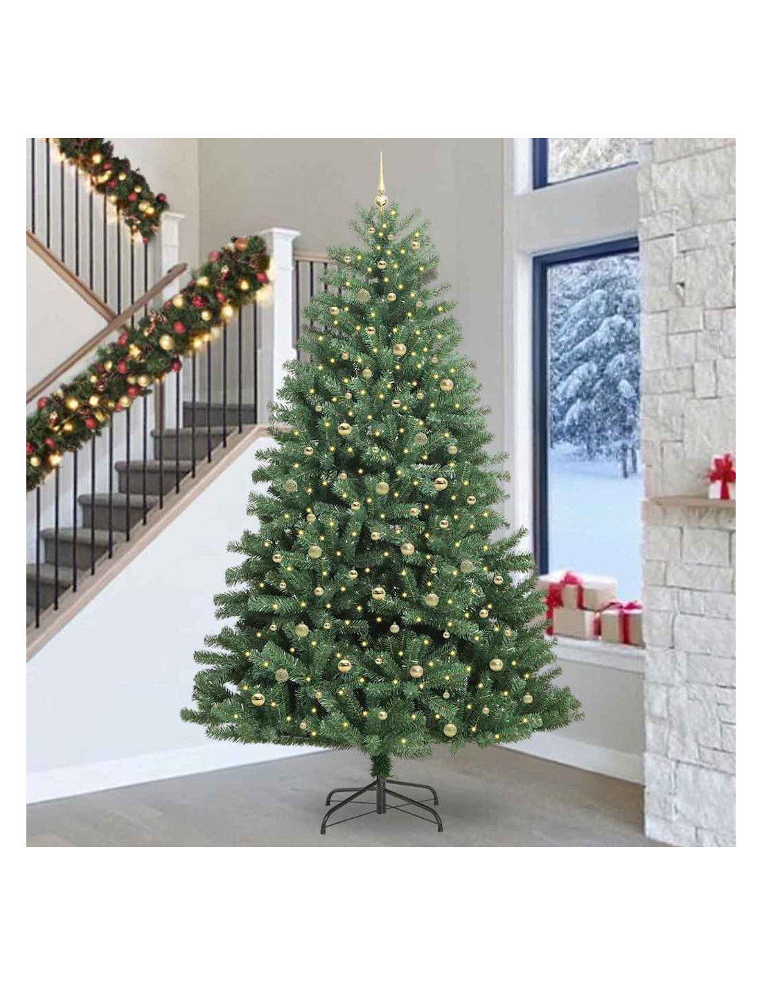 - Materiali di alta qualità: Questo albero è fatto di PVC resistente, quindi è durevole e resiste all'usura del montaggio e della conservazione. Il PVC rende l'albero simile a un abete vero e offre anche proprietà ignifughe per una maggiore sicurezza. Così, la tua decorazione sarà bella e sicura durante le feste.