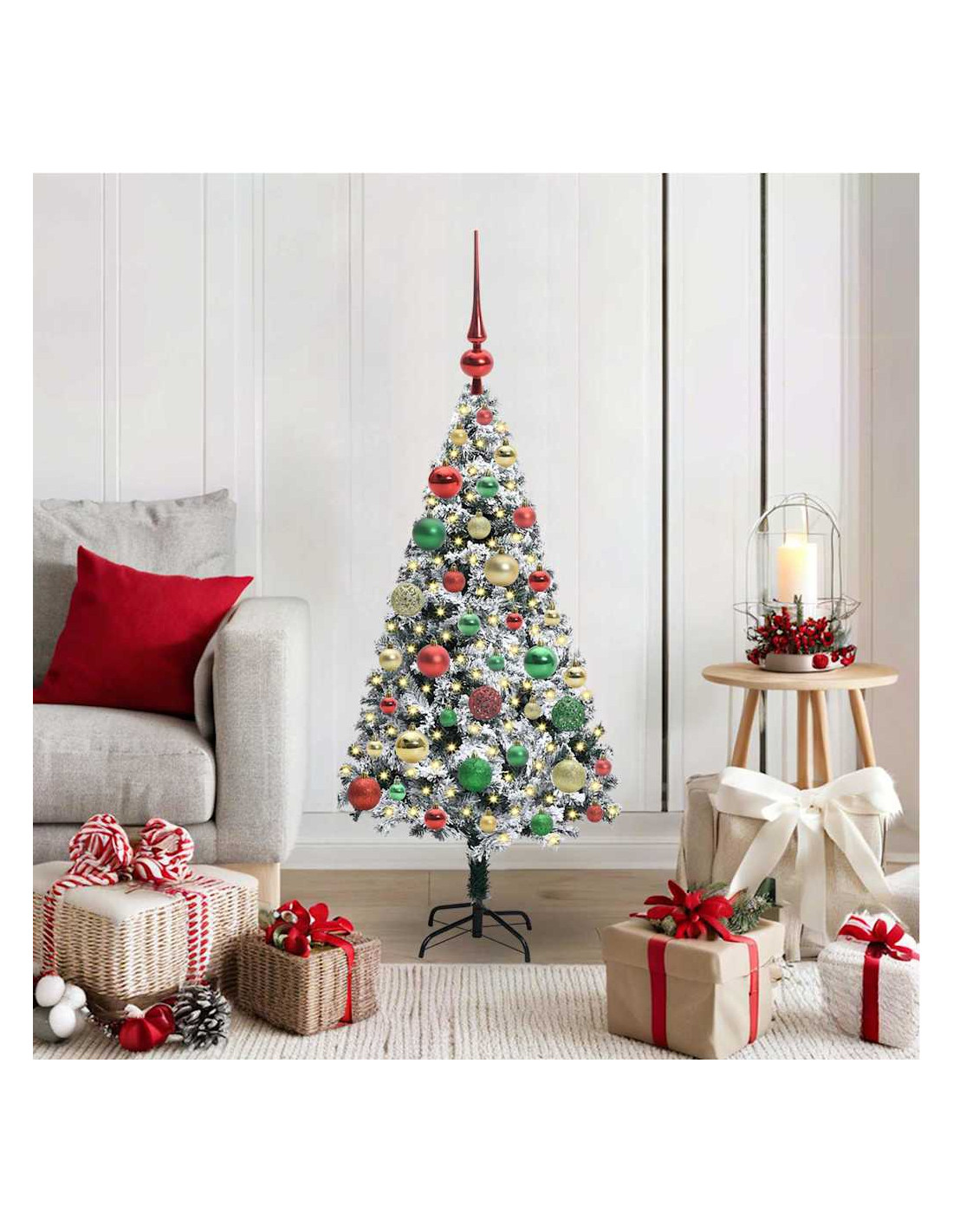 Questo albero di Natale artificiale porta un tocco di modernità e festa in ogni soggiorno o spazio esterno. Ha una struttura conica e un verde acceso che riproduce la bellezza di un vero albero, senza il casino. La sua superficie ruvida dà una sensazione naturale, rendendo l'atmosfera ancora più natalizia. Si integra perfettamente in case moderne, creando uno sfondo tranquillo per feste e serate in compagnia.