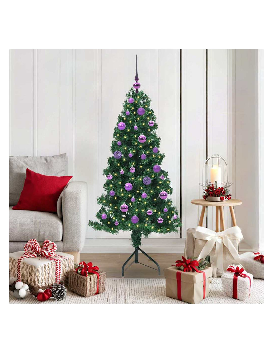 Questo albero di Natale artificiale pre-illuminato mescola un design moderno con un'atmosfera festosa per una soluzione incredibile e salvaspazio per decorare a Natale. Perfetto per chi ama un look minimalista, si integra bene in spazi contemporanei grazie alle sue linee pulite. La forma a un quarto si adatta perfettamente agli angoli, rendendolo ideale per soggiorni piccoli o ripari esterni. Con i suoi rami verdi in PVC, questo albero ha un aspetto classico e luci LED bianche calde che creano un'atmosfera accogliente.
