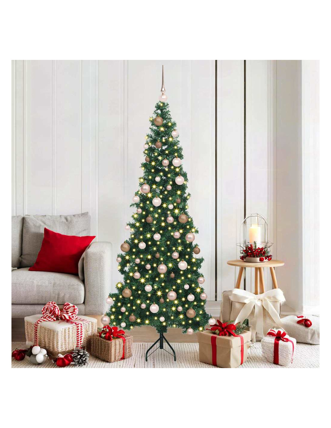 Questo albero di Natale artificiale pre-illuminato mescola un design moderno con un'atmosfera festosa per una soluzione incredibile e salvaspazio per decorare a Natale. Perfetto per chi ama un look minimalista, si integra bene in spazi contemporanei grazie alle sue linee pulite. La forma a un quarto si adatta perfettamente agli angoli, rendendolo ideale per soggiorni piccoli o ripari esterni. Con i suoi rami verdi in PVC, questo albero ha un aspetto classico e luci LED bianche calde che creano un'atmosfera accogliente.